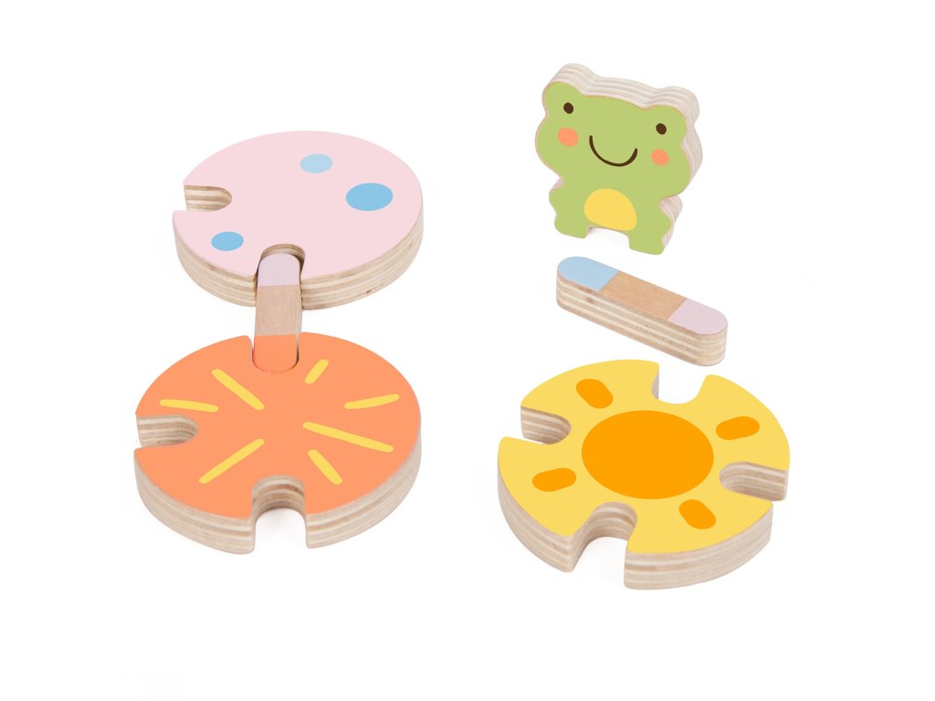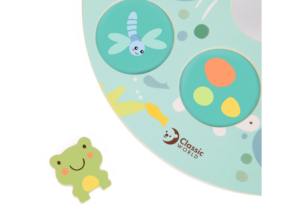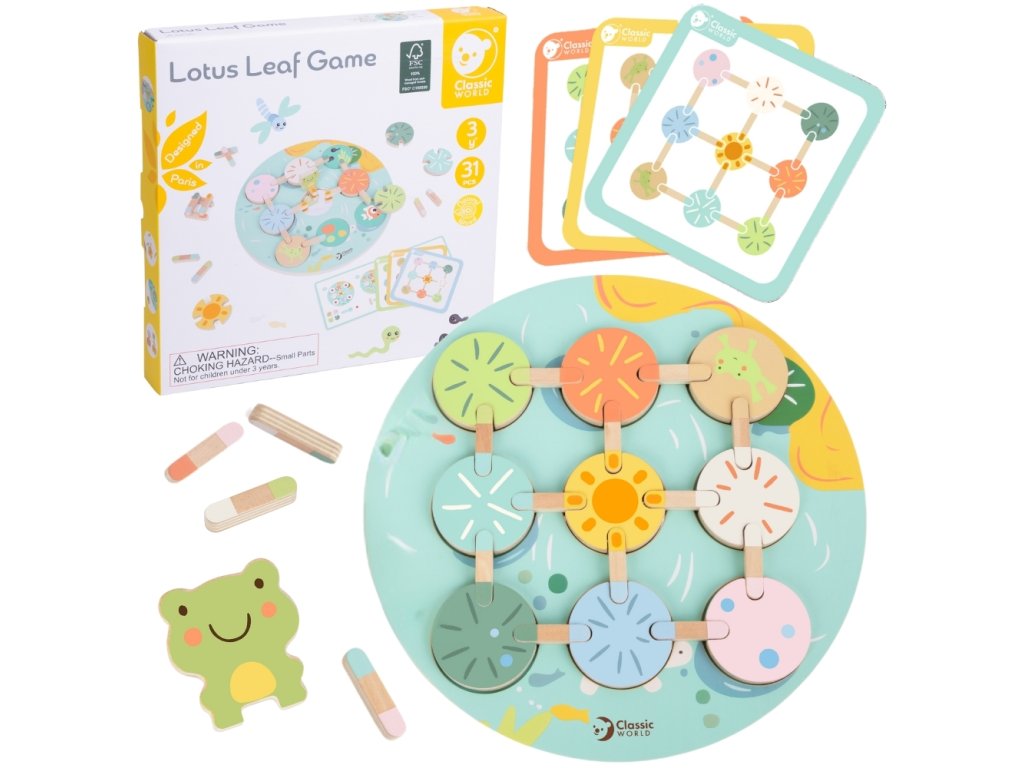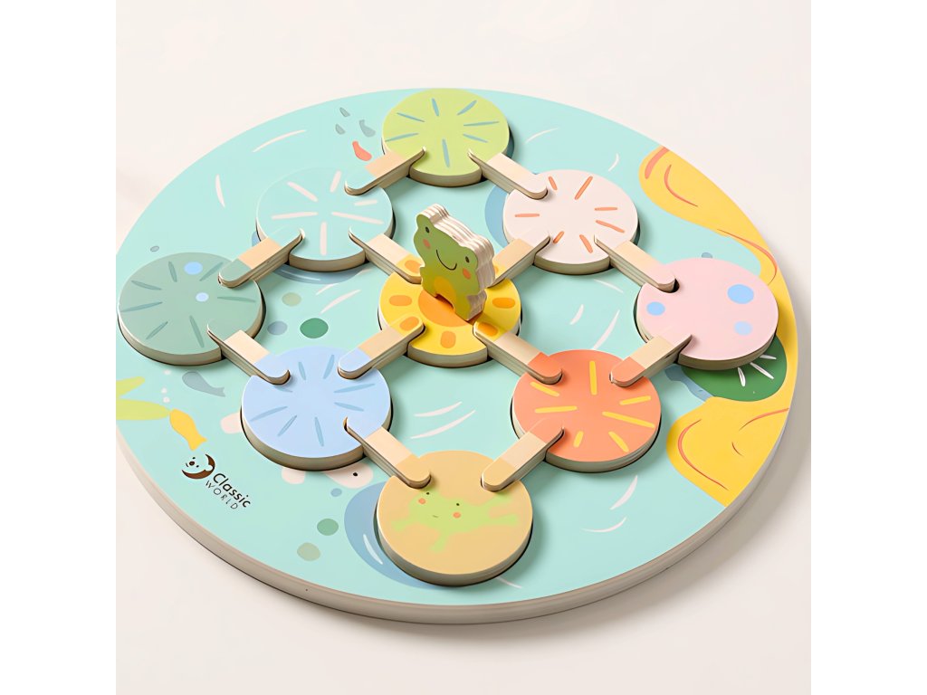 Drevená vzdelávacia hra "Žabka skladačka" od spoločnosti Classic World je fascinujúca logická hračka, v ktorej vaše dieťa spája listy a tvary tak, aby rozkošná žabka mohla "skákať" po dráhe. Súprava bola navrhnutá s ohľadom na najmenších - dieliky sú farebné, bezpečné a ľahko uchopiteľné. Táto inovatívna hra rozvíja priestorové myslenie a učí spájať správne časti dráhy do logického celku. Tým, že je vyrobená z prírodného, ekologického dreva, zaručuje trvanlivosť a prirodzený vzhľad. Ide o skvelú možnosť darčeka, ktorý zábavným spôsobom spája vzdelávanie s pútavou a kreatívnou hrou.