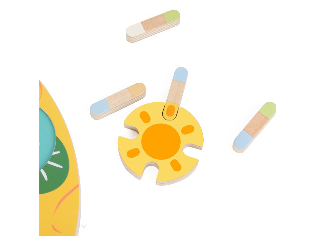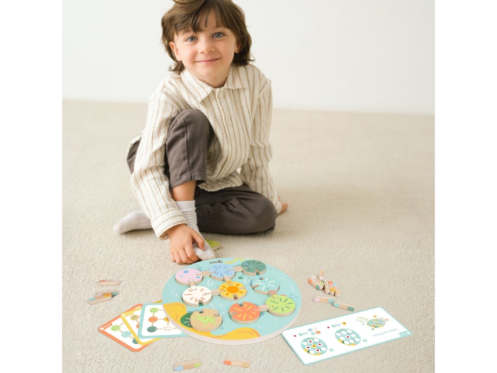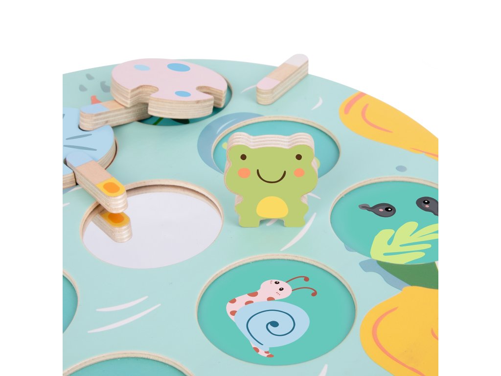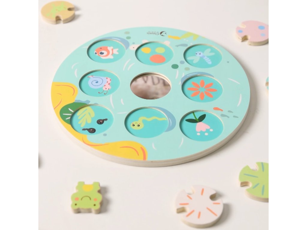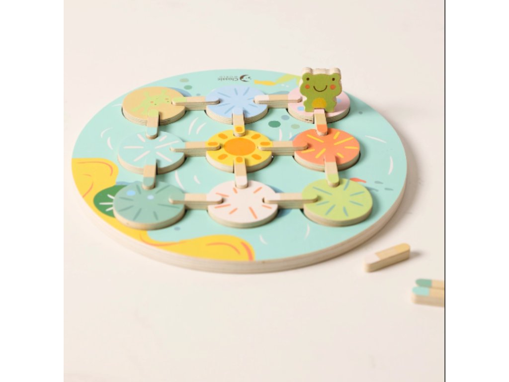 Drevená vzdelávacia hra "Žabka skladačka" od spoločnosti Classic World je fascinujúca logická hračka, v ktorej vaše dieťa spája listy a tvary tak, aby rozkošná žabka mohla "skákať" po dráhe. Súprava bola navrhnutá s ohľadom na najmenších - dieliky sú farebné, bezpečné a ľahko uchopiteľné. Táto inovatívna hra rozvíja priestorové myslenie a učí spájať správne časti dráhy do logického celku. Tým, že je vyrobená z prírodného, ekologického dreva, zaručuje trvanlivosť a prirodzený vzhľad. Ide o skvelú možnosť darčeka, ktorý zábavným spôsobom spája vzdelávanie s pútavou a kreatívnou hrou.