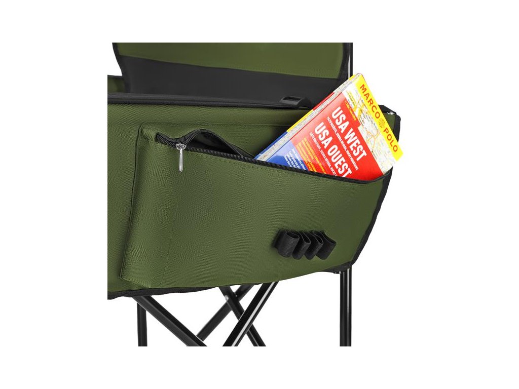 Vstavané bočné vrecká umožňujú uloženie drobných predmetov, ako sú nápoje, turistické doplnky alebo občerstvenie, ktoré sú tak vždy po ruke. Na zadnej strane operadla je natlačená stupnica s dĺžkou 15 palcov.