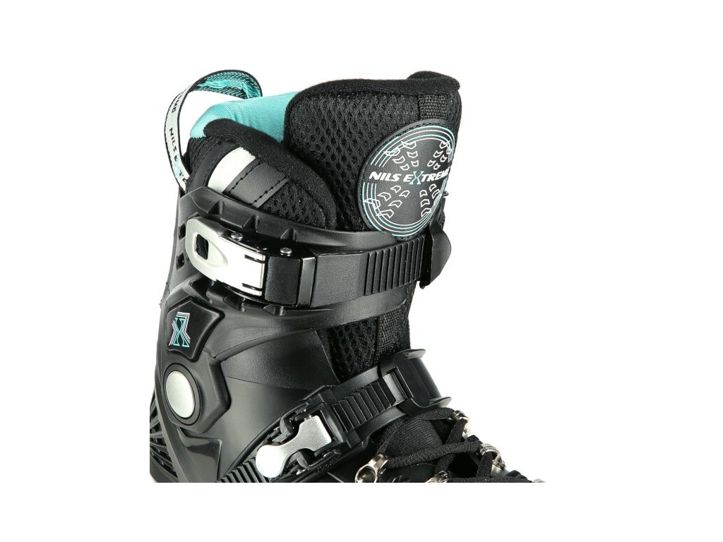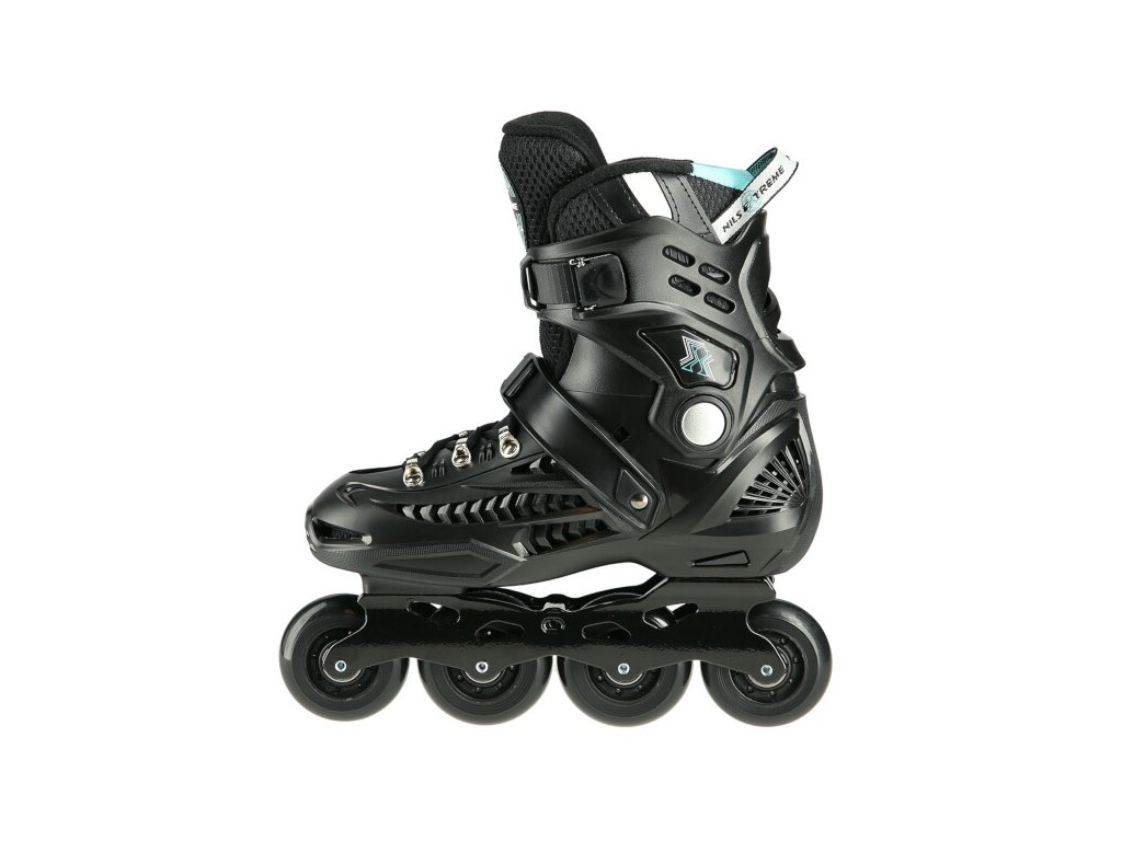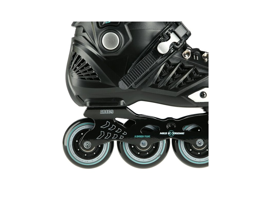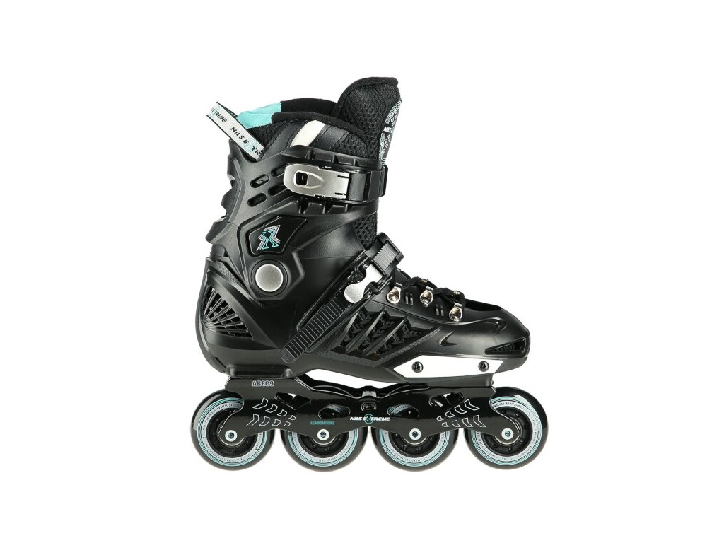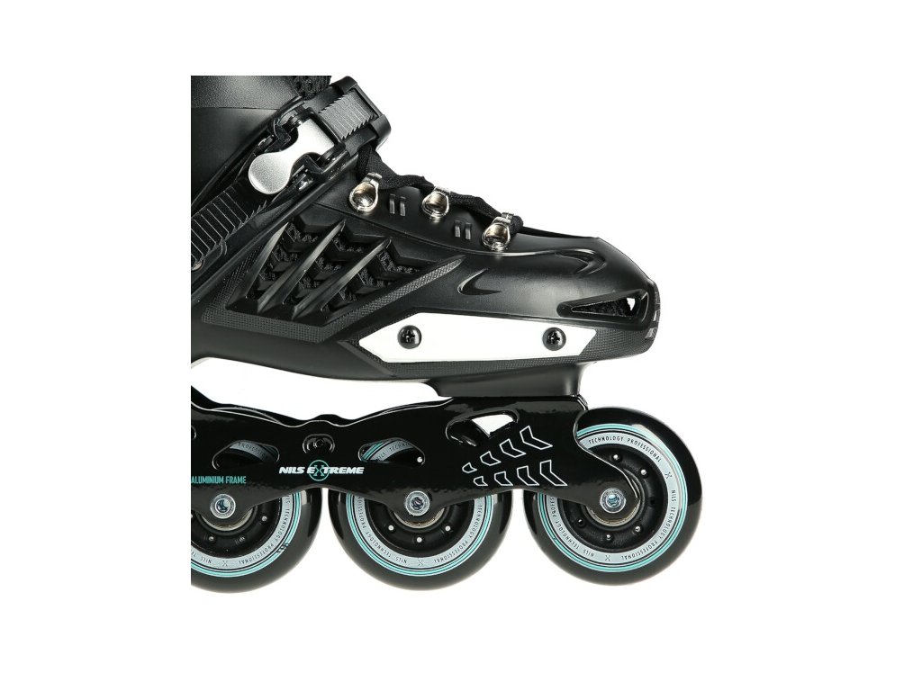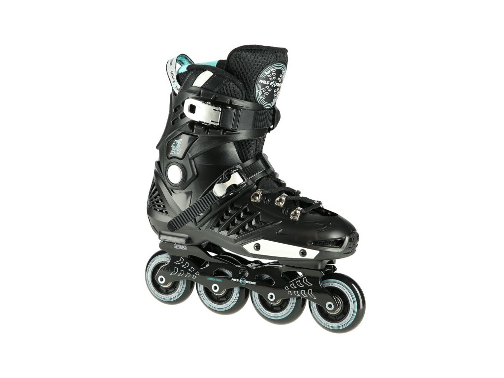 Kolieskové korčule NILS Extreme NA20001 sú určené predovšetkým na freeride a slalom. Ich konštrukcia je založená na ľahkej vetranej topánke s anatomickou stielkou zaručujúcou vysokú stabilitu päty, polypropylénovom skelete a hliníkovej lište vyrobenej vstrekovaním. Ako zapínanie sa používa šnurovanie a dvojdielne vysokokvalitné pracky s napínacím mechanizmom. Na vonkajšej strane topánky nájdeme slider, ktorý sa tak často používa pri freeride.