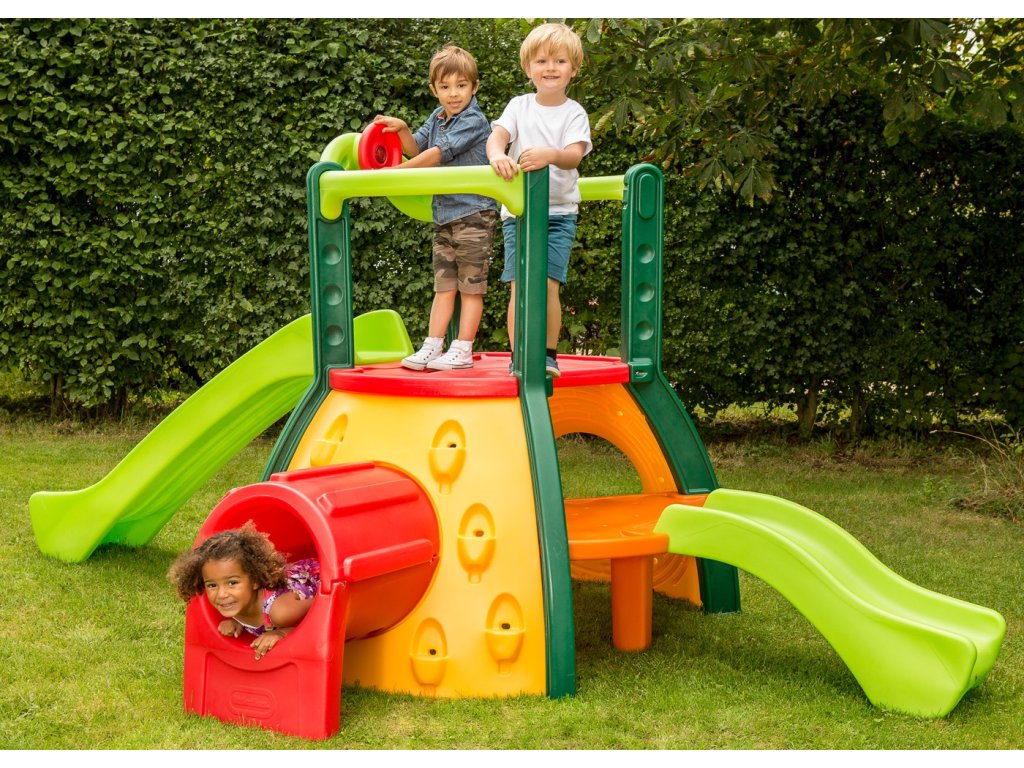 Super opičí háj Americká spoločnosťLittle Tikes poskytuje nekonečné lezenie, šmýkanie sa po šmýkačke a hru na schovávačku. Ideálne pre dom a záhradu. Vhodná na skupinovú hru, Rozvíja fyzickú kondíciu vášho dieťaťa. Ideálna hračka pre vaše deti! Objav nielen na horúce dni! Super opičí háj je dokonalé záhradné vybavenie pre batoľatá! Energické deti nájdu na tejto veľkej šmykľavke veľa zábavy pri lezení a šmýkaní. Deti môžu vyliezť na skalnú stenu a pozrieť sa dole z obrovskej plošiny. Dve šmykľavky sú vhodné pre deti rôzneho veku. Veľkolepý plazivý tunel slúži ako "únikový prielez" počas tajných misií a obrovská pevnosť pod medziposchodím funguje ako úkryt.