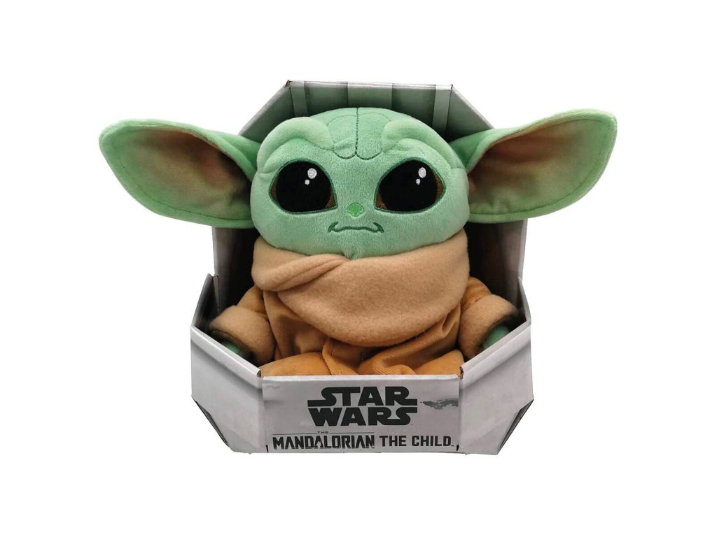 Veľkosť: 25 cm. Škatuľa je replikou detskej postieľky Yodu z filmu Mandalorian.