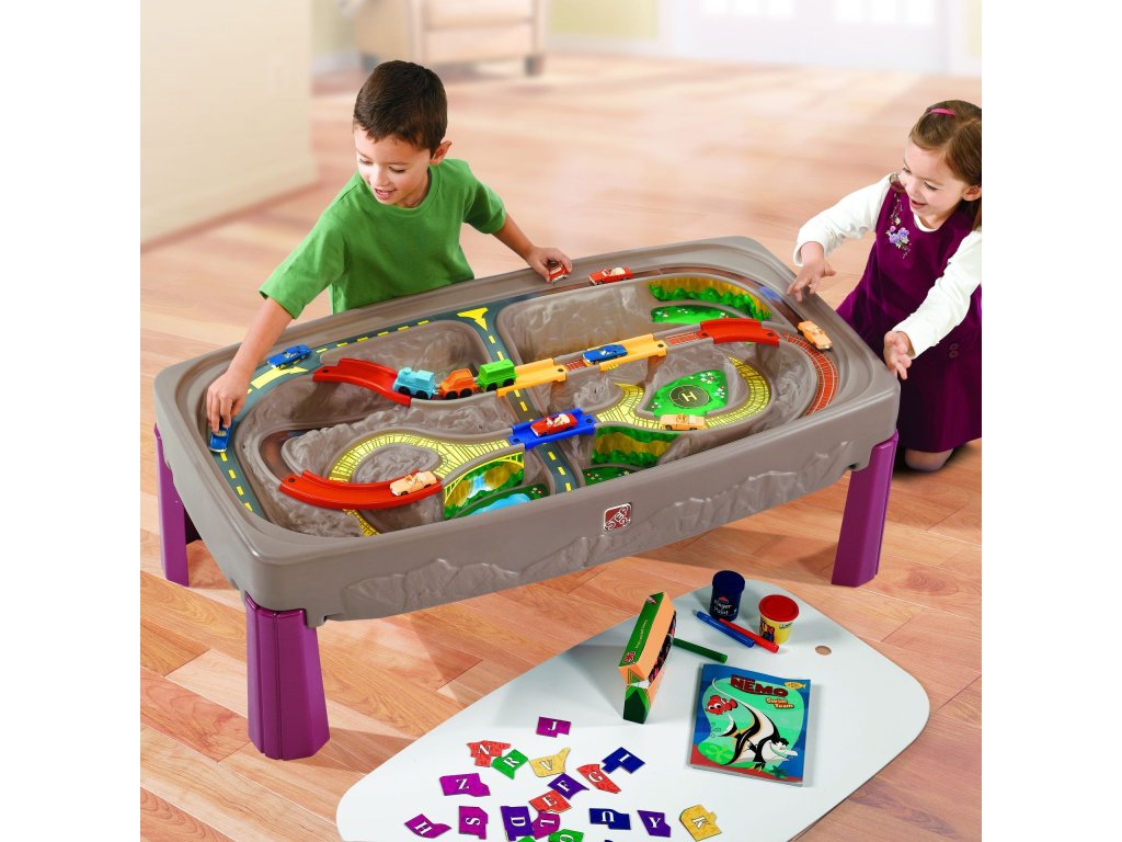 Stôl pre autá Canyon s vrchnou časťou je veľký predĺžený stôl od renomovanej americkej spoločnosti KROK2 je skvelá hračka, ktorá vytvára pre vaše dieťa veľa príležitostí na hru s rezorciami a inými vozidlami. Má viacúrovňovú, tvarovanú trať a neodnímateľné mostíky, takže už nikdy nebudete musieť prestavovať trať pre svoje deti! Pomôže to malým dirigentom rozvíjať ich sociálne zručnosti, keď sa budú deliť o vláčiky a koľaje so spoluhráčmi a súrodencami. Hladké veko ho premení na stolík na remeslá a občerstvenie.