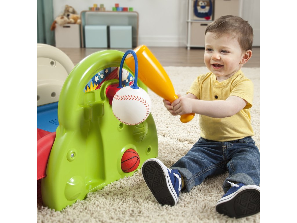 Detské ihrisko od spoločnostiKROK2 má veľa možností, ako sa zabaviť. V tomto pútavomcentrum aktivít pre malé deti je hlavne tematickýšport. Deti si môžu precvičovaťrovnováha a motorické zručnosti, lezenie na veľmivšeobecne iklesá na stránke snímky na druhej strane. Je to tiežlopta a basketbalový kôš čo umožňuje batoľaťu hodiť do cieľa. Okrem toho môžete použiť priloženýpalicazasiahnuť uviazanýbaseball! S touto športovou hračkou, navrhnutou špeciálne pre najmenších, bude váš malý červík počas hry skákať domov, šmýkať sa do základne a robiť úžasné smeče do koša. Keď sa zábava skončí, použitezabudovaný úložný priestorschovať basketbalovú loptu a zatlačiť tyč na vonkajšiu stenu centra aktivít, aby bolo všetko blízko na ďalší deň zábavy.