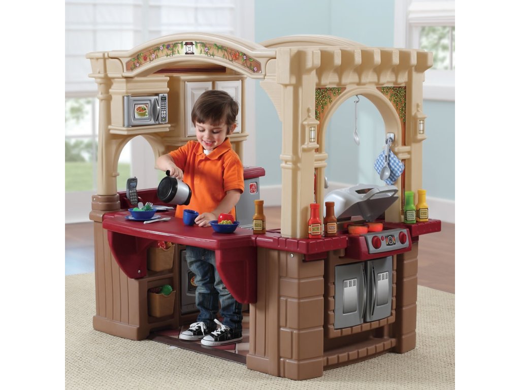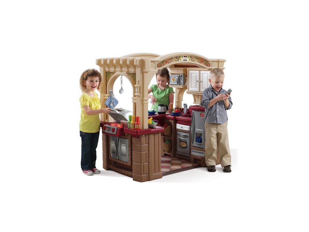 - - Luxusná kuchynská hracia plocha STEP2 v tvare kocky pôsobí ako priestory kuchyňa s minimálnou výškou 120 cm a dĺžkou strany 130 cm.
