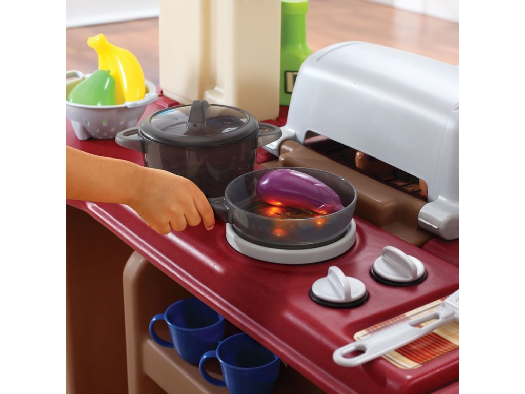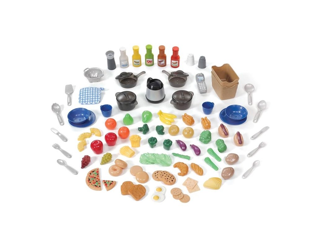 Zadajte kuchynská súpravazistiť podrobnosti trojstranné miesto na hranie, od nerezovej povrchovej úpravy jednotky a tvarovanej podlahy až po biele skrinky, výsuvný úložný priestor a mimoriadne veľkú pracovnú dosku. Aktivujte realistický svetlá a zvuky kuchynského horáka so špeciálnym náčiním, potom použite vstavaný drez s otočnou batériou na umytie riadu po večierku. Okrem toho je táto veľká predstieraná kuchyňa vybavená 103 kusov hodnotiaca sada, aby deti mohli okamžite začať pripravovať jedlo na ďalšie stretnutie. Deti sa už nemôžu dočkať, kedy začnú variť a hrať sa vo vlastnej kuchyni!
