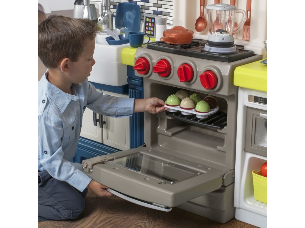 Ovládacie prvky, ako sú ovládače, boli vyrobené vyrobené z najkvalitnejších materiálov. Malí kuchári môžu predviesť svoje kulinárske zručnosti pri "varení" na štýlových kuchynských horákoch s veľkými klikateľnými gombíkmi a po skončení zábavy sa riad dá uložiť do skriniek.