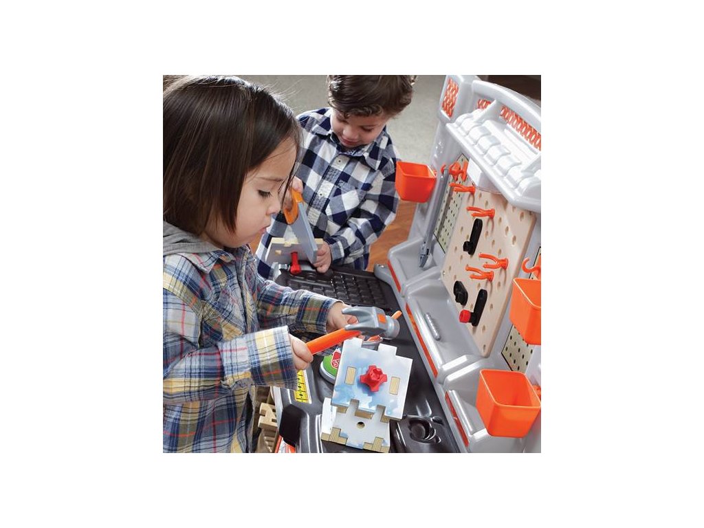 Od spracovania dreva po stolárstvo - malé deti majú všetko, čo môžu stavať a s čím môžu manipulovať vo svojich prvý workshop od uznávanej značky výrobcu hračiek Krok2. Sada obsahuje až 45 príslušenstvo s ktorými môžete zrealizovať akýkoľvek detský projekt. Postavte priloženú vtáčiu búdku, natrite ju vodou pomocou priloženej sady farieb a sledujte, ako mení farbu! Zapnite horné svetlo, aby ste osvetlili hraciu plochu. Dielnička obsahuje mnoho kešiek a kontajnery, vŕtačka vydáva zvuky rovnako ako skutočná stavebnica má na hornej strane pohyblivý zverák s pružinou - to všetko robí z tejto sady ideálnu súpravu pre malých staviteľov. Počas hry si malé deti rozvíjajú svoje motorické zručnosti, pveľká veľkosť pracovného stola vám umožní cvičiť sociálne zručnosti počas spoločenskej hry s priateľmi.