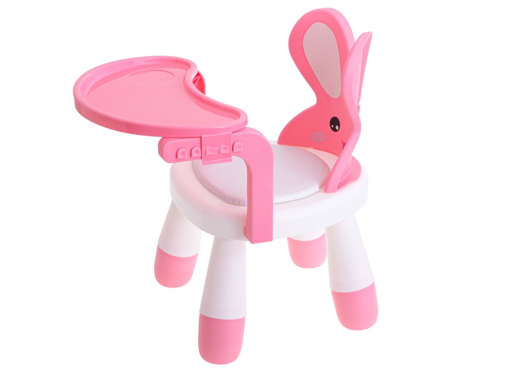 Rozkošná vysoká stolička v tvare zajačika so stolíkom je ideálnym a mimoriadne praktickým kusom nábytku do detských interiérov.