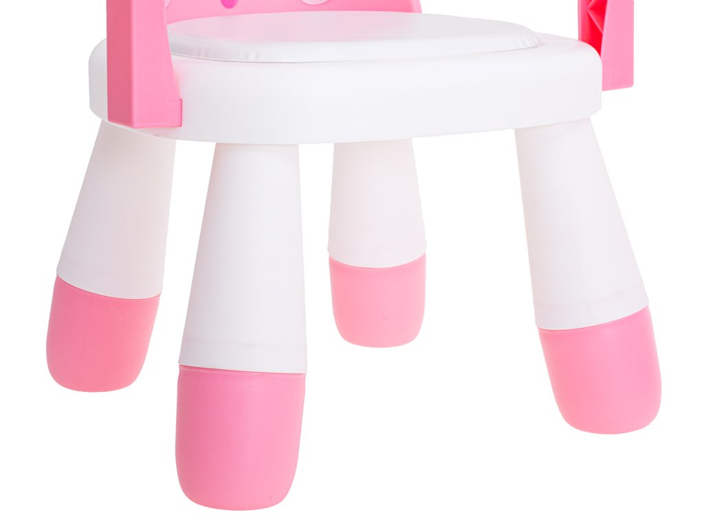 Malé deti rastú a menia sa veľmi rýchlo. Možnosť nastaviť výšku stoličky v dvoch stupňoch vám umožní prispôsobiť ju potrebám vášho rastúceho dieťaťa. Ak chcete zvýšiť výšku stoličky, stačí vymeniť opierky nôh za vyššie. Okrem toho je možné stôl úplne rozložiť a ponechať len stoličku, na ktorej môže vaše dieťa sedieť.Súprava je vyrobená z kvalitného plastu, ktorý zaručuje dlhú životnosť. Robustná konštrukcia a pohodlné sedadlo potešia rodičov aj batoľa. Celá súprava sa ľahko čistí. Stačí ju utrieť vlhkou handričkou alebo v prípade silnejšieho znečistenia možno stoličku umyť pod tečúcou vodou.
