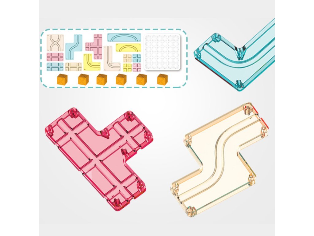 - - 12 x priehľadné koľajnice rôznych tvarov a farieb