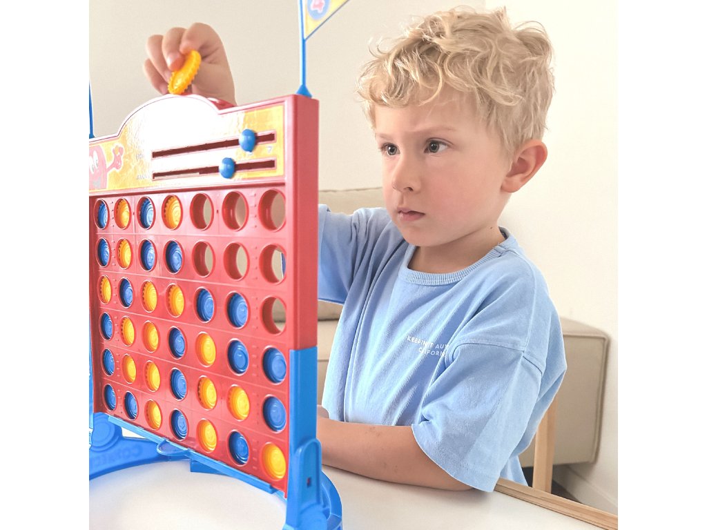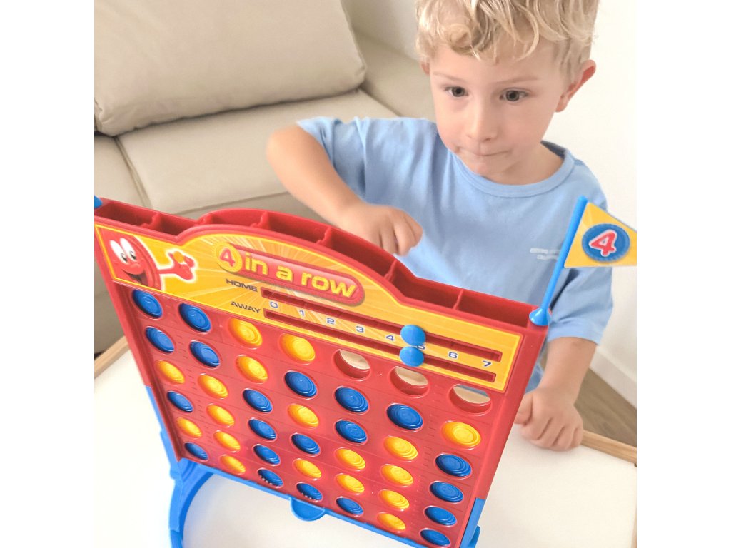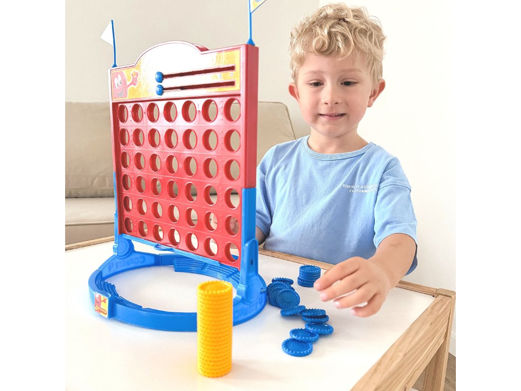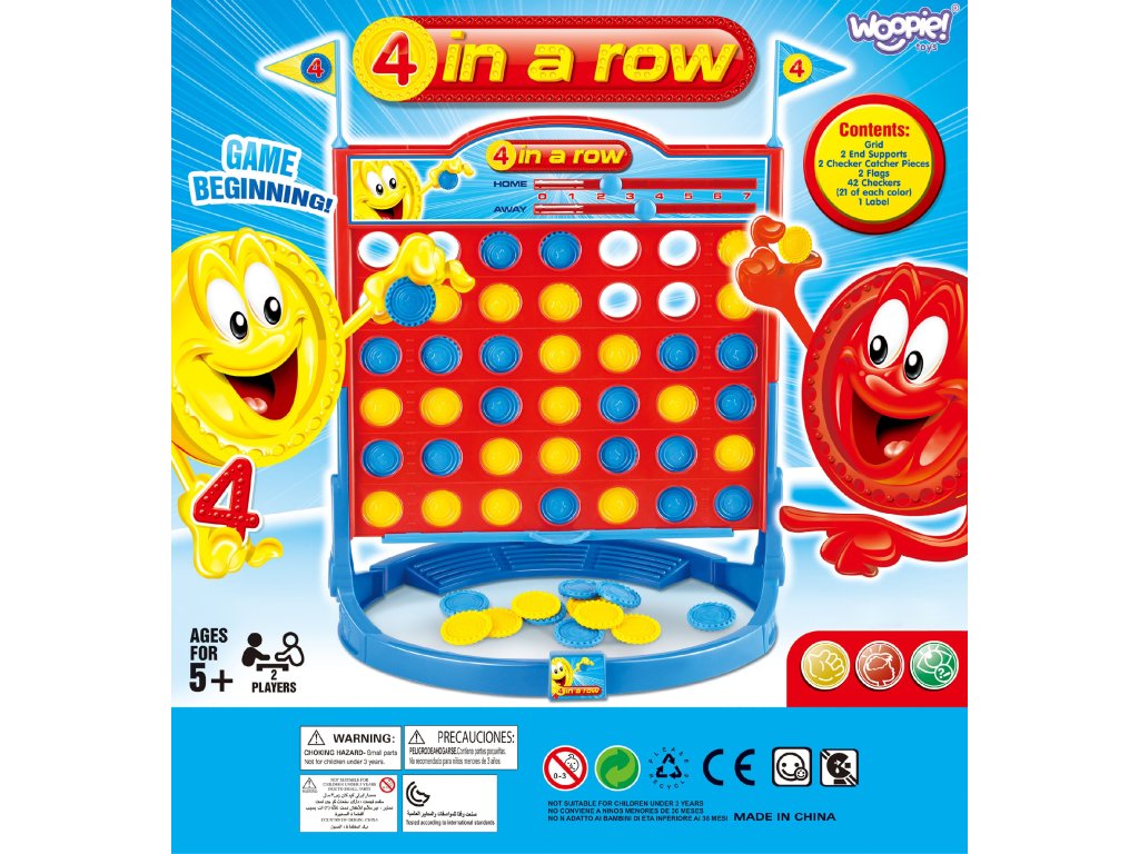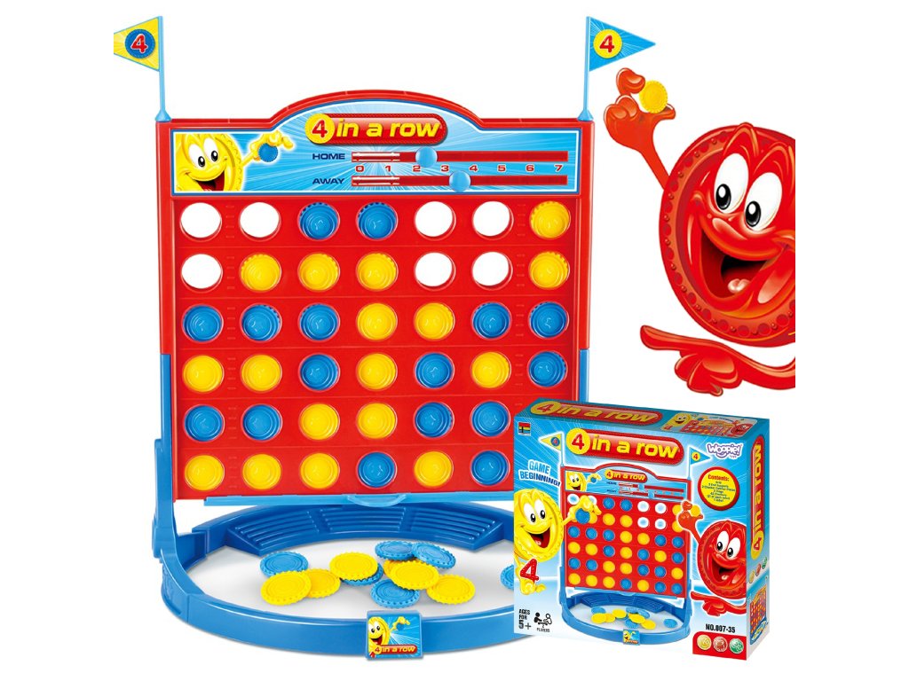 Hra4 V RADEje logická hra pre celú rodinu. Jedinečná hra pre dvoch šikovných hráčov.4 V RADE poskytuje deťom skvelú zábavu. Hra rozvíja logické myslenie vášho dieťaťa, precvičuje myseľ a koordináciu očí. Obsahuje hraciu dosku a žetóny v dvoch farbách. Prvý hráč vhodí jeden zo svojich žetónov do ľubovoľného otvoru v hornej časti hracej plochy. Druhý hráč potom umiestni svoj žetón a zároveň sa snaží blokovať ťahy súpera. Hráči sa pri pohybe striedajú. Cieľom hry je zoradiť štyri žetóny rovnakej farby za sebou. Ak hráč získa prvé 4 žetóny rovnakej farby v rade, vyhráva. Hra je vhodná pre malých aj veľkých. Rodičia ju radi hrajú aj so svojimi deťmi.