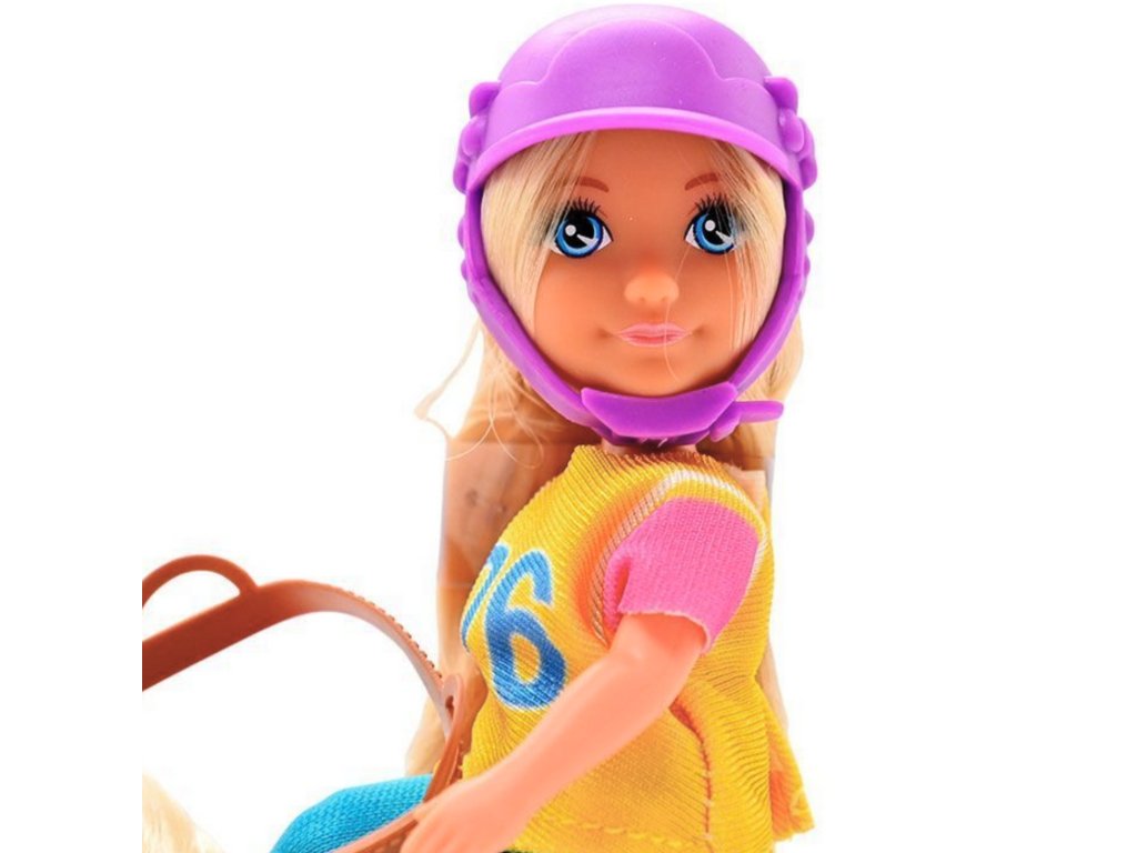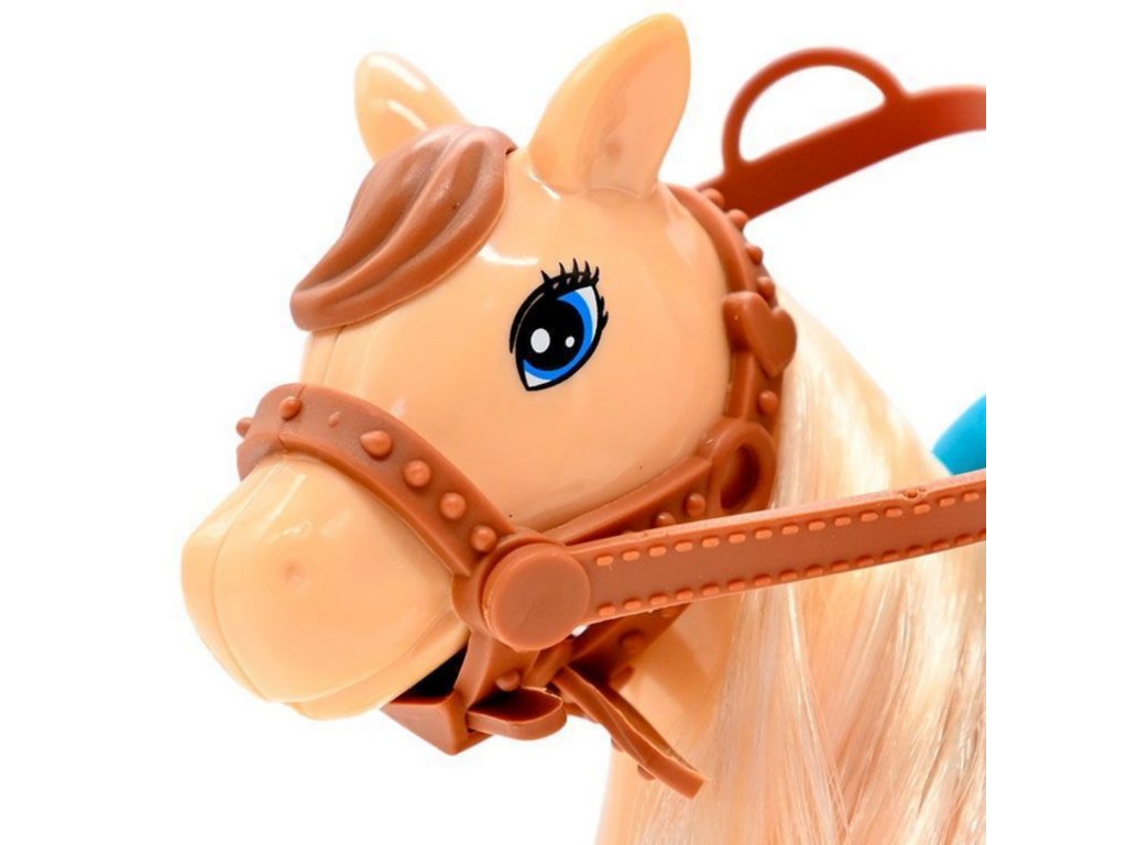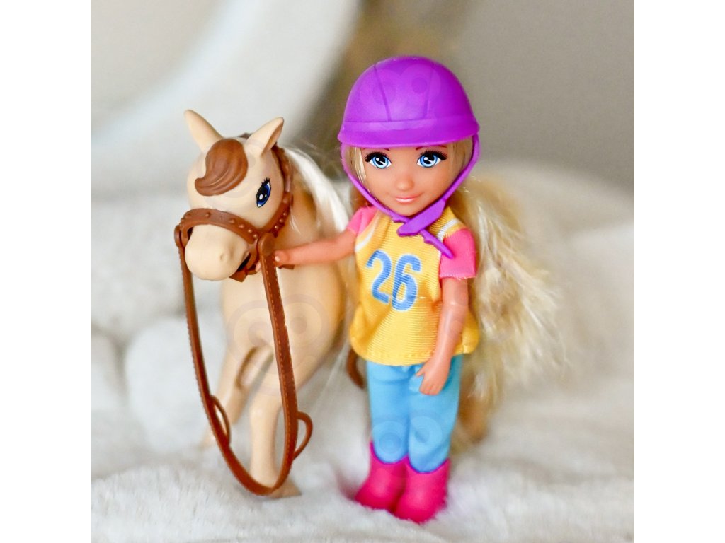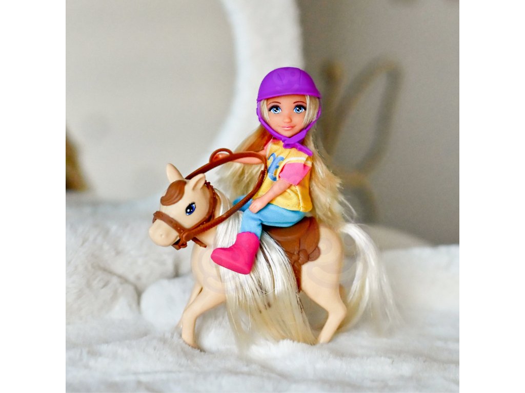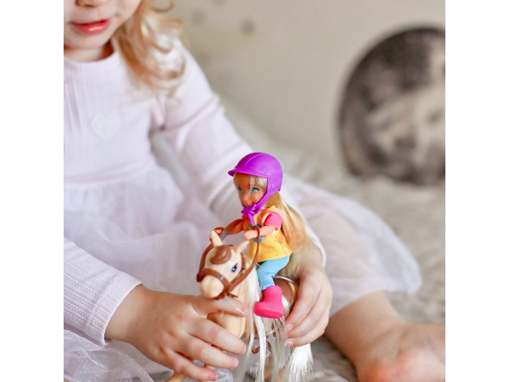 - - Bábika je posadená na koni s viditeľným sedlom a uzdou, čo podporuje hrurealistické scény.