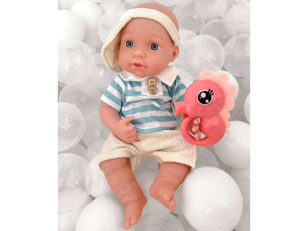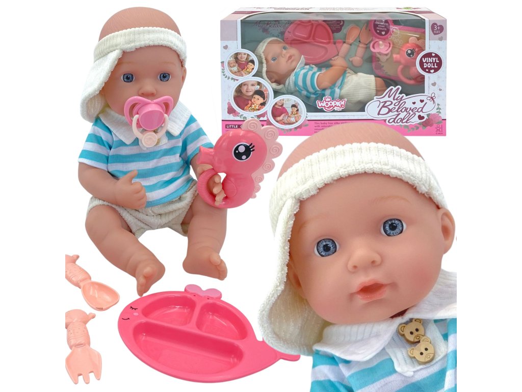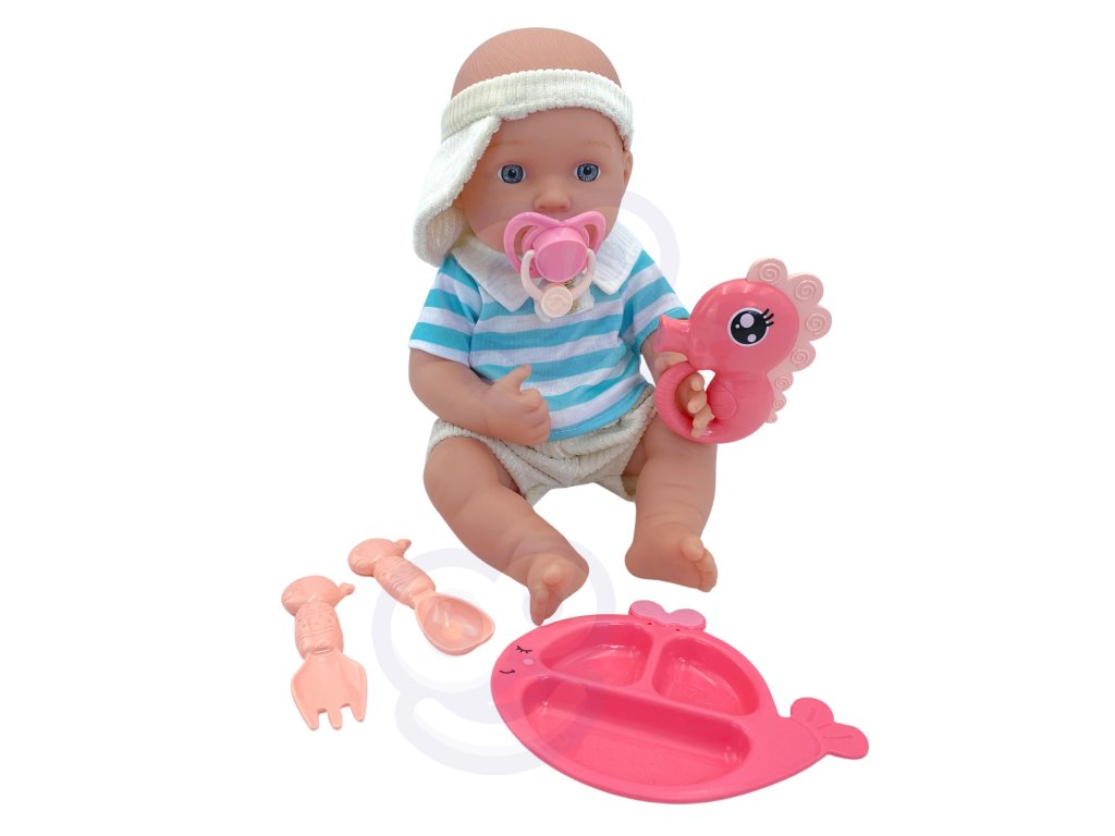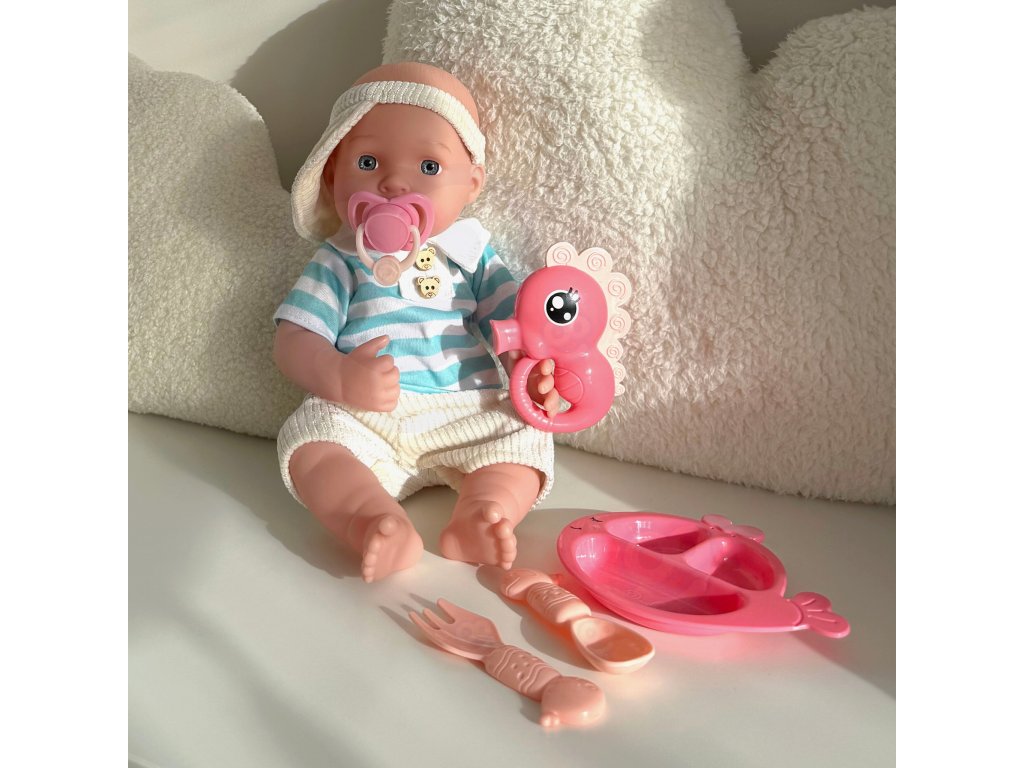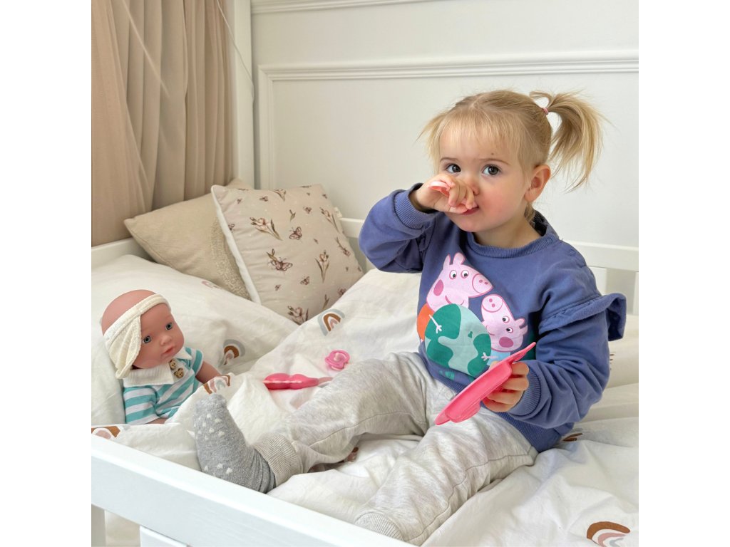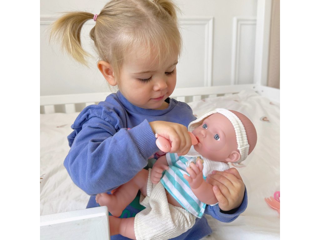 Súprava opatrovateľaje nezvyčajná hračka vytvorená pre deti, ktoré chcú preberať roly dospelých. 30 cm dlhá bábika bol starostlivo vytvorený z mäkká guma, ktorý zaručuje mäkkosť a príjemný dotyk. Jehorukoväte, nohy a hlava sú otočné, ktorá umožňuje rôzne herné polohy a má aj odnímateľné oblečenie, takže deti môžu bábiku kreatívne obliekať a vyzliekať. Súprava obsahuje všetko potrebné príslušenstvo na starostlivosť o bábiku. Nájdete v nejkŕmna súprava,prebaľovanie a hranie. Je dobré vziať si bábiku na prechádzky abatoh s nosičomčo deťom umožní ešte viac sa zapojiť a kreatívne sa hrať.
