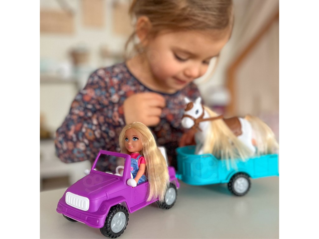 Vydajte sa na cestudobrodružstvá na vidieku so súboromBábika Kiki s koňom, autom a prívesomod značky Woopie! Táto komplexná sada na hranie rolí s tematikou ranča/farmy obsahujemini bábikakto môže sedieť za volantomfialové terénne vozidlo. Pripojte k nemutyrkysový karavanna prepravu jehokôň! Bábika mádlhé blond vlasyktoré sa dajú česať a kôň másedlo a uzda. Je to ideálna hračka, ktorá rozvíjapredstavivosť a tvorivosť a umožňuje vytvárať nekonečné scenáre súvisiace so životom na farme. Súprava je určená pre detiod 3 rokov.