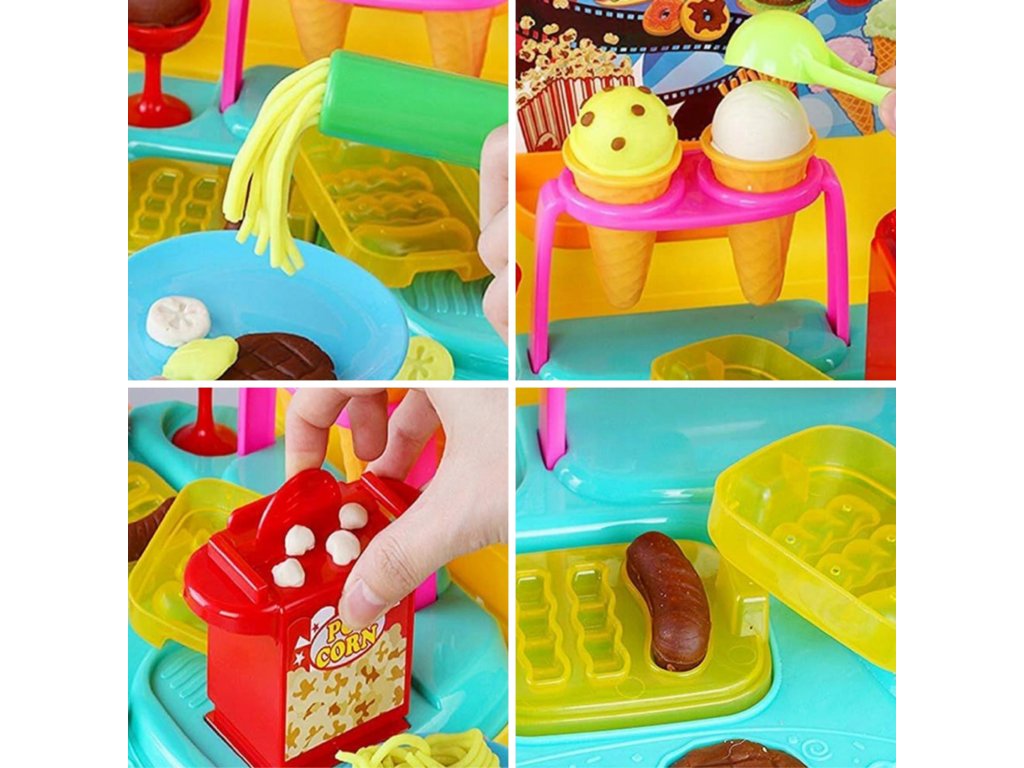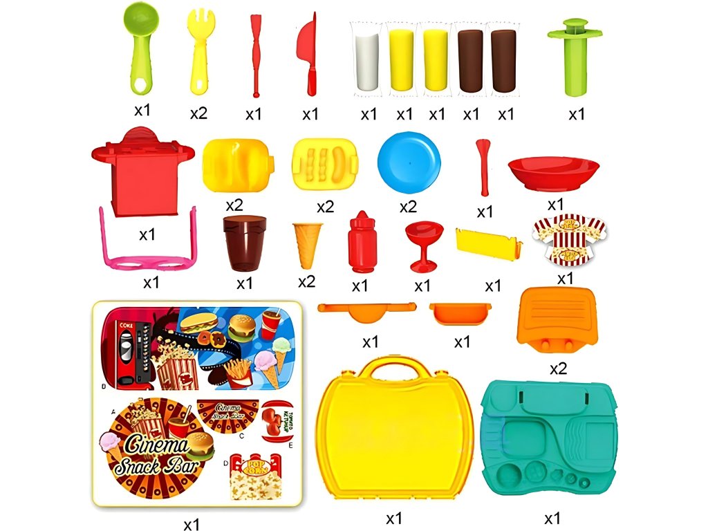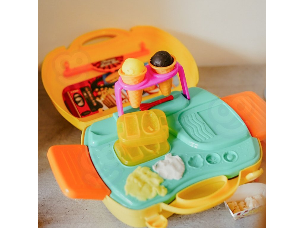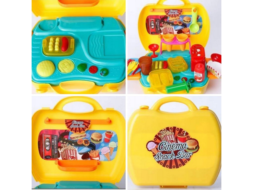 Súprava na výrobu občerstvenia od značky Woopie je splneným snom každého malého gurmána a ambiciózneho kuchára. Táto rozkošná, prenosná hracia súprava na občerstvenie umožní vášmu dieťaťukreatívne trávenie časua zároveň rozvíjal svoje manuálne zručnosti a predstavivosť.Kompaktný, ktorý je uzavretý v praktickom puzdre na prenášanie, je ideálny na hranie doma, u priateľov aj na cestách. Jednoducho otvorte kufrík, rozložte bar a začnite svoje kulinárske dobrodružstvo v priebehu niekoľkých sekúnd.Bohaté príslušenstvo zaručuje hodiny pútavej zábavy. Vaše dieťa môže prevziať úlohu kuchára, predavača alebo zákazníka a vytvoriť si vlastné scenáre a jedlá. Súprava umožňuje pripraviť obľúbené občerstvenie, ako je zmrzlina, hranolky, hamburgery alebo popcorn. Stačí, ak z cestovinovej hmoty vyformujete tvar príslušného výrobku a potom ho naservírujete na tanier alebo do špeciálneho obalu.Vysokokvalitné spracovanie a bezpečné materiály poskytujú bezpečnú a dlhotrvajúcu zábavu. Je to vynikajúci nápad na darček, ktorý určite poteší každé dieťa a poskytne mu veľa zábavy.