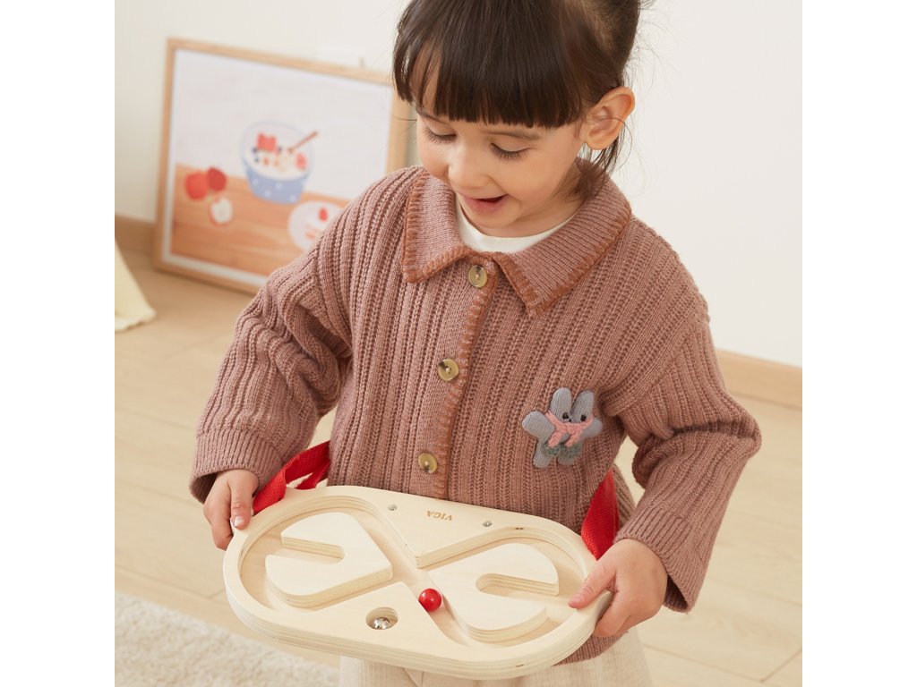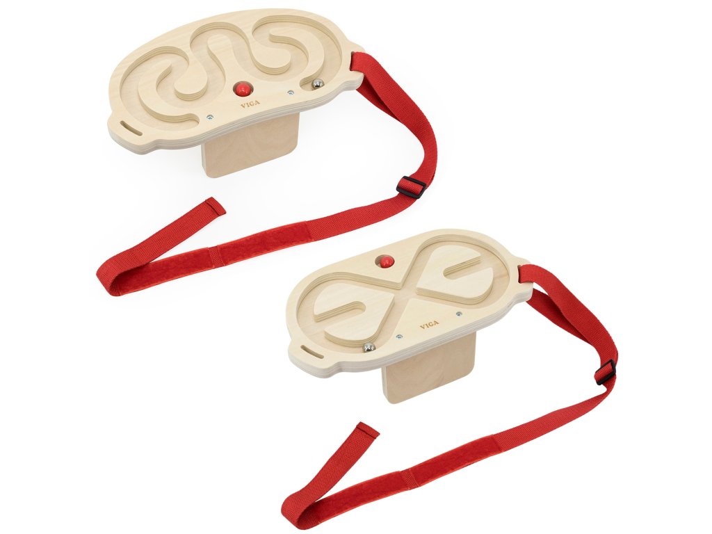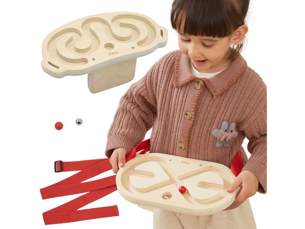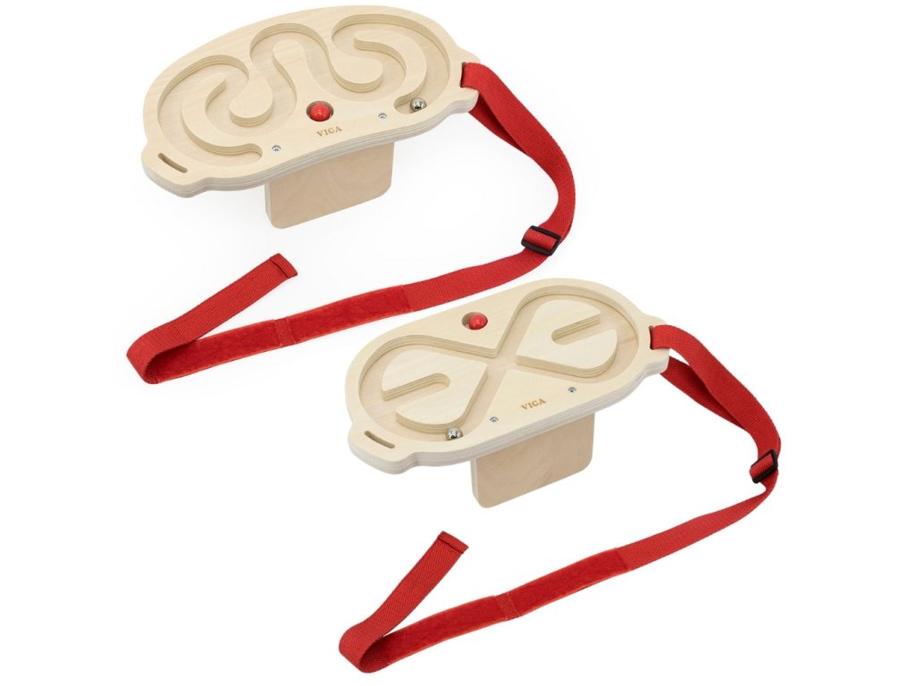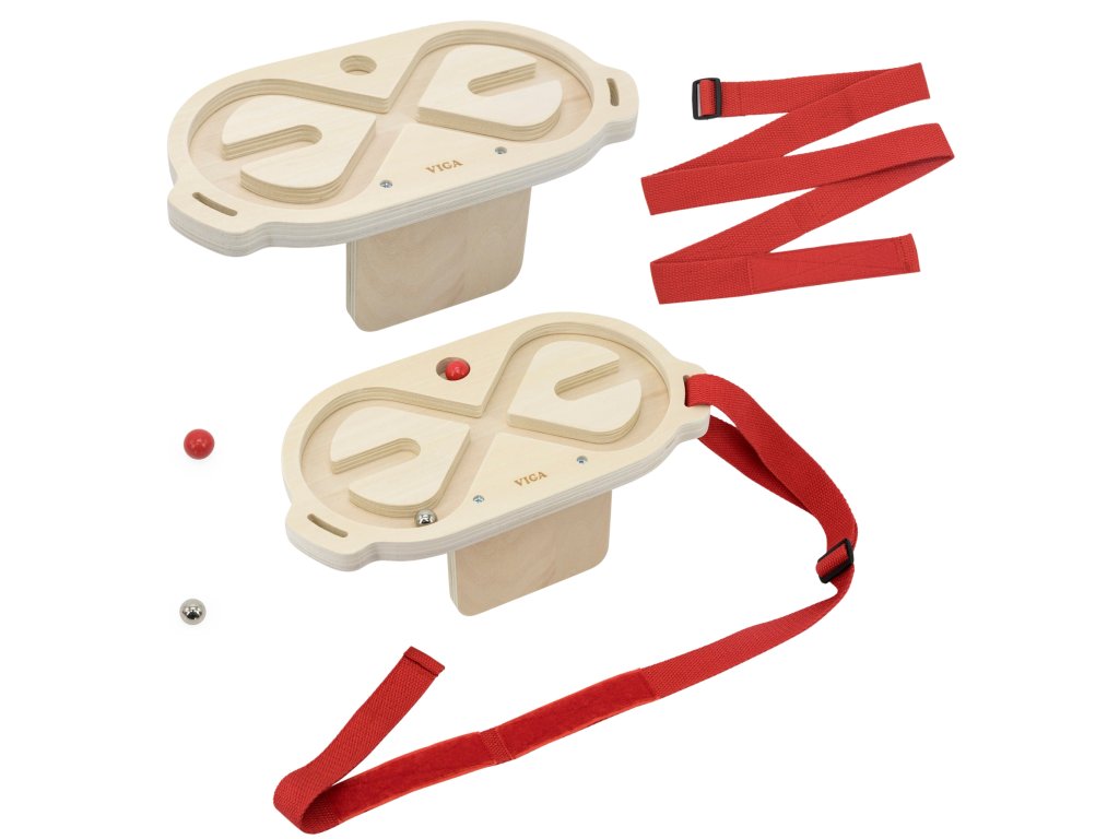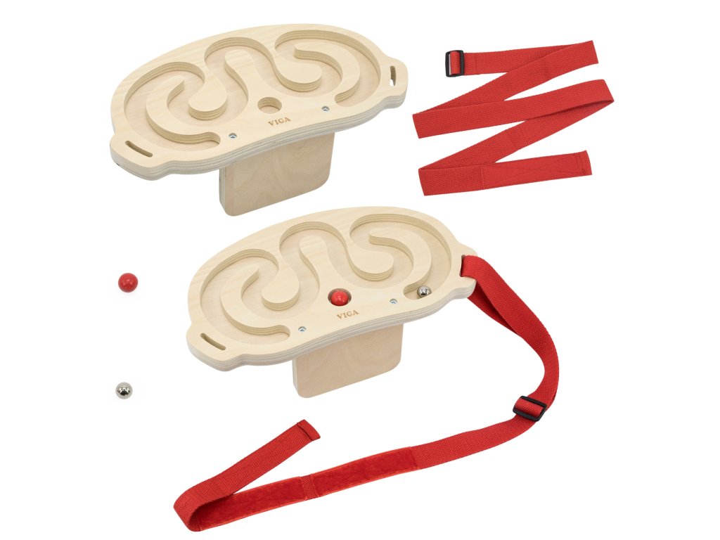 VIGA Súprava bludiska na vyvažovanie tela je inovatívna pohybová hra, ktorá zapája celé telo, rozvíja koordináciu a rovnováhu. Vďaka dvom dreveným bludiskám a loptičkám s rôznou hmotnosťou sa hra stáva pre deti vzrušujúcou výzvou. Hráči si pás s bludiskom nasadia na pás, hruď, nohy alebo ruky a potom pohybom tela uvedú loptičku do pohybu a vedú ju bludiskom. Hračku možno používať samostatne alebo súťažiť vo dvojiciach, čo zvyšuje zábavu a integruje účastníkov.