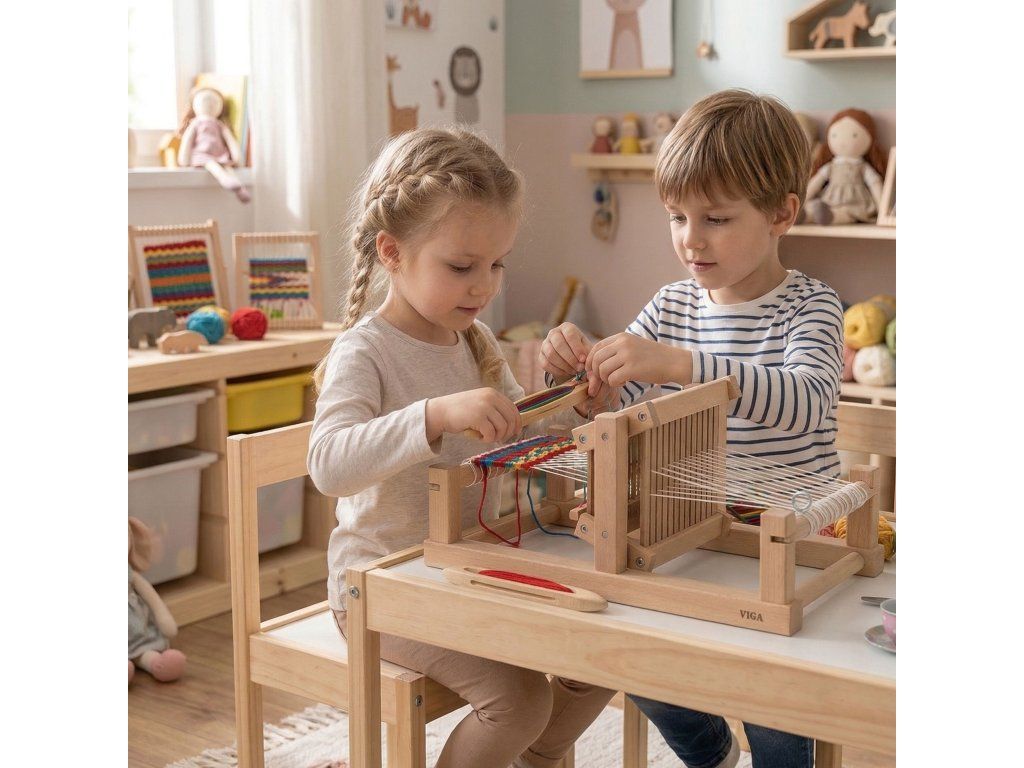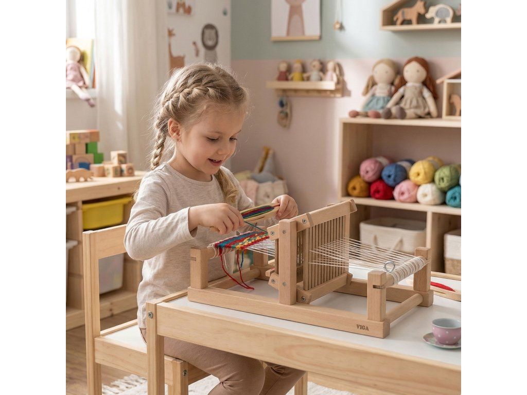 Objavte čarovný svet remesiel a nechajte svoje dieťa pocítiť hrdosť na vlastnoručne vyrobený materiál!Klasické,drevené krosná od značkyViganie je len hračka, ale skutočná tvorivá dielňa, ktorá premení detskú izbu na malú tkáčsku dielňu. Vďaka jednoduchej a pevnej konštrukcii si aj začínajúci umelci rýchlo osvoja umenie prepletania farebné nite. Spoločná hra s krosnami je dokonalým spôsobom, ako sa upokojiť, sústrediť a naučiť sa trpezlivosti v jej najradostnejšej podobe. Dajte svojmu dieťaťu nástroj, ktorý rozvíja predstavivosť a prináša skutočné výsledky.
