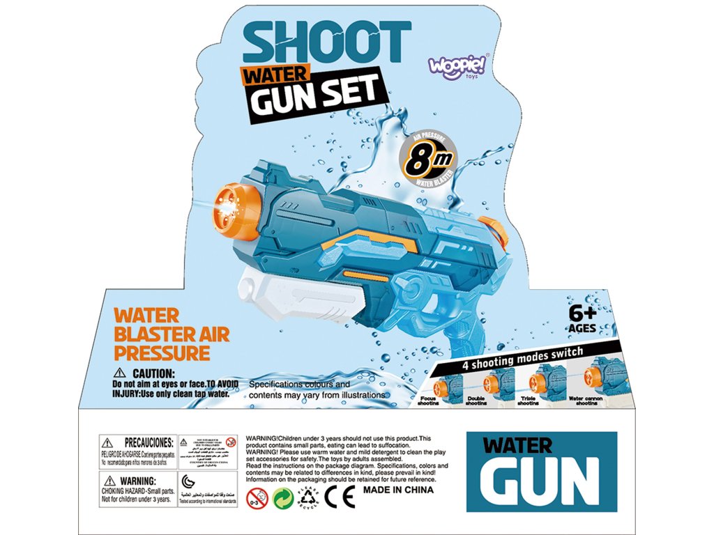 Vodná pištoľod značky WOOPIEje hračka do vody určená pre deti, ktorá poskytuje hodiny zábavy vonku, najmä počas teplých dní. Hlavným charakteristickým znakom tohto vodného blastera je pohonný mechanizmus založený natlak vzduchu. Dieťa čerpá vodu do zásobníka, čím vytvára tlak, ktorý umožňuje vystreliť prúd vody na veľkú vzdialenosť do 8 m. Vodná pištoľje skvelá hračka, ktorá poskytuje deťom veľa zábavy a zároveň podporujefyzická aktivita a sociálna interakcia