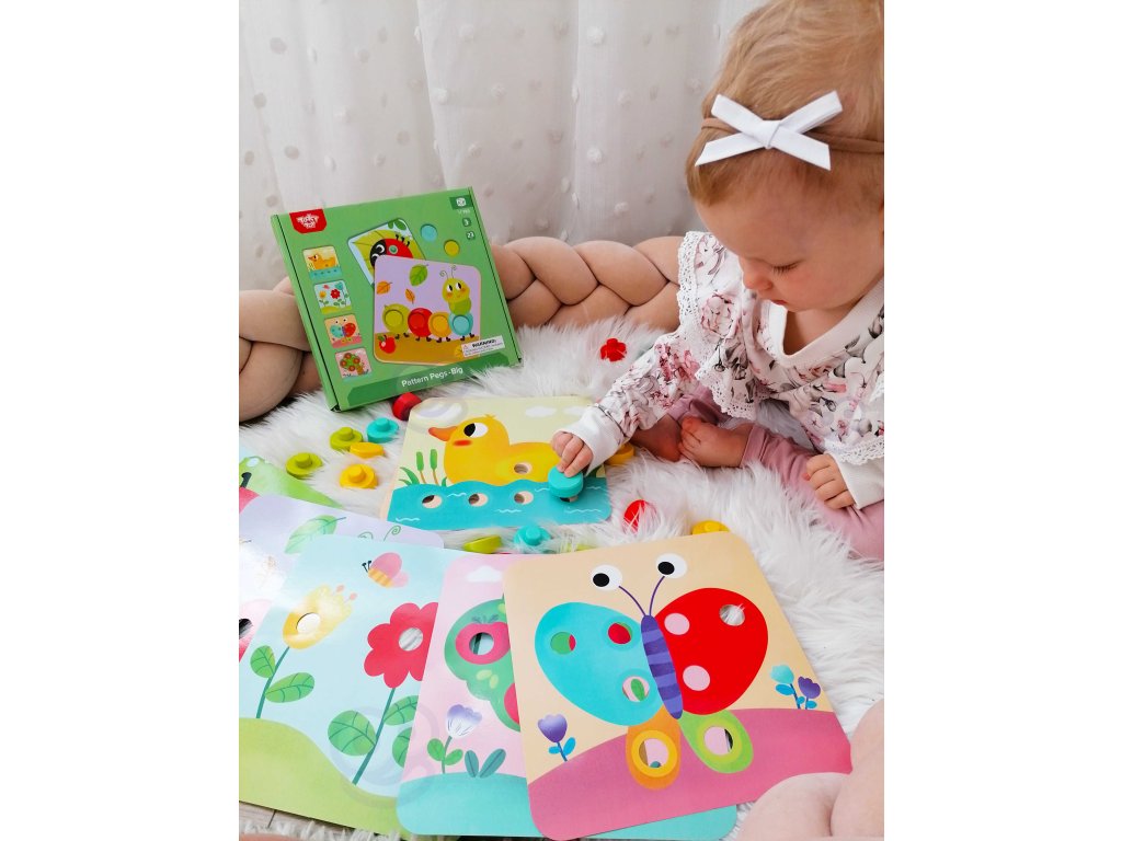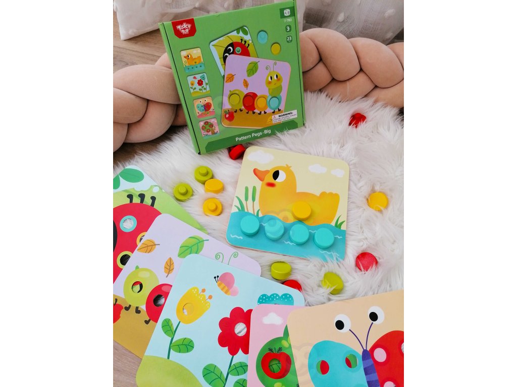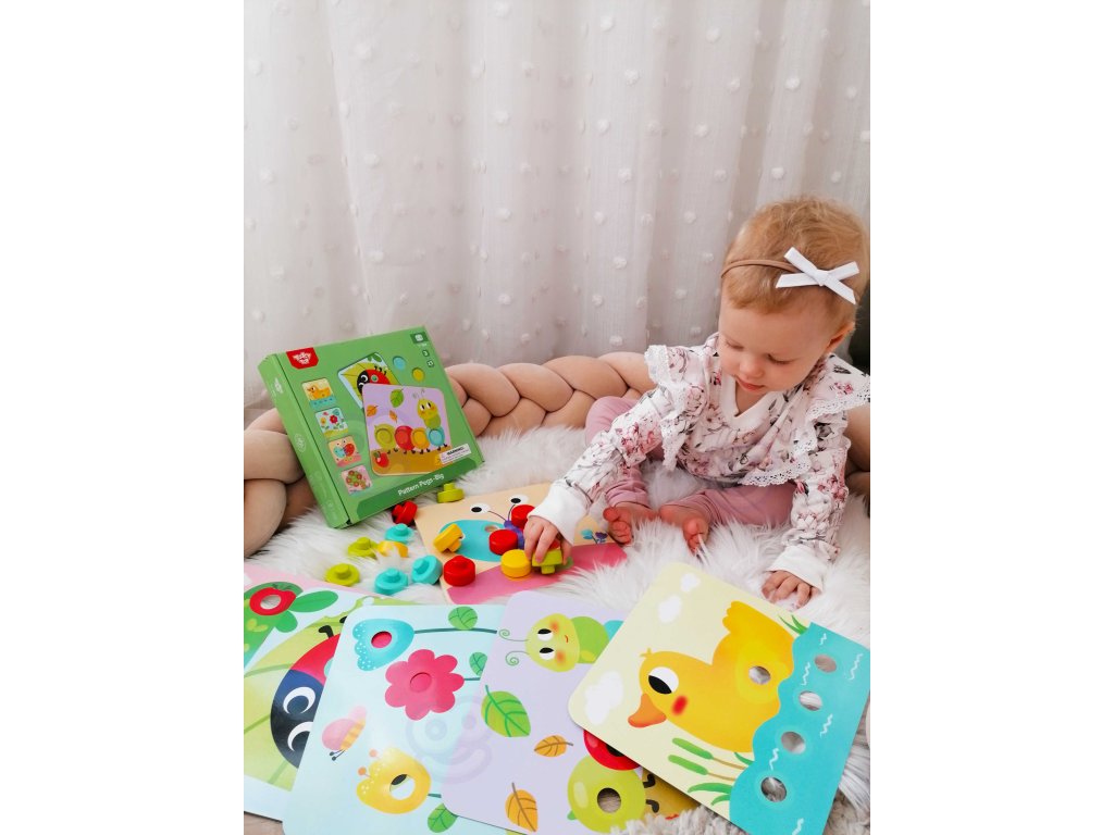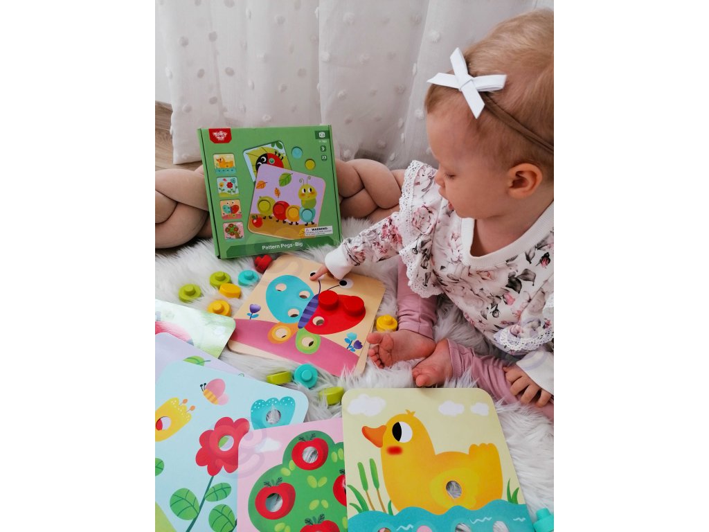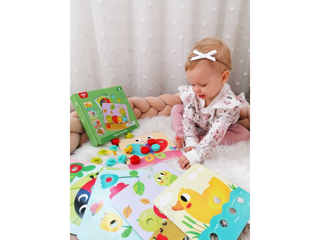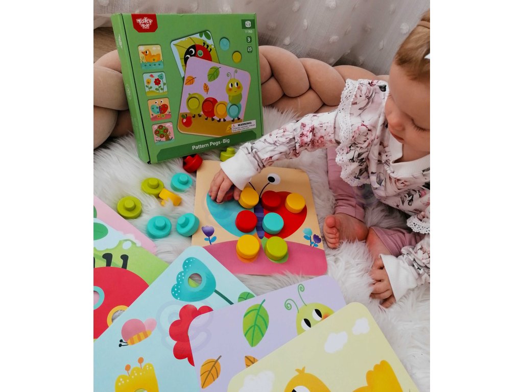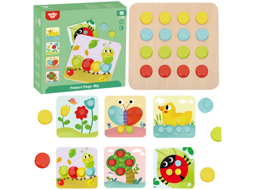 Drevené farebné blokya z Tooky Toy pre deti od veku 12 mesiacov je ideálny do domácnosti aj do detskej izby. Skladá sa z doska so 16 farebnými tehličkami a 6 dosiek so zvieratami. Na každú dosku treba pripevniť dielik, aby vznikol kompletný obrázok. Na drevenom podstavci sú zárezy, ktoré tvarom zodpovedajú farebné hádanky. S hračkou si dieťa rozvíja koordináciu oko-ruka.