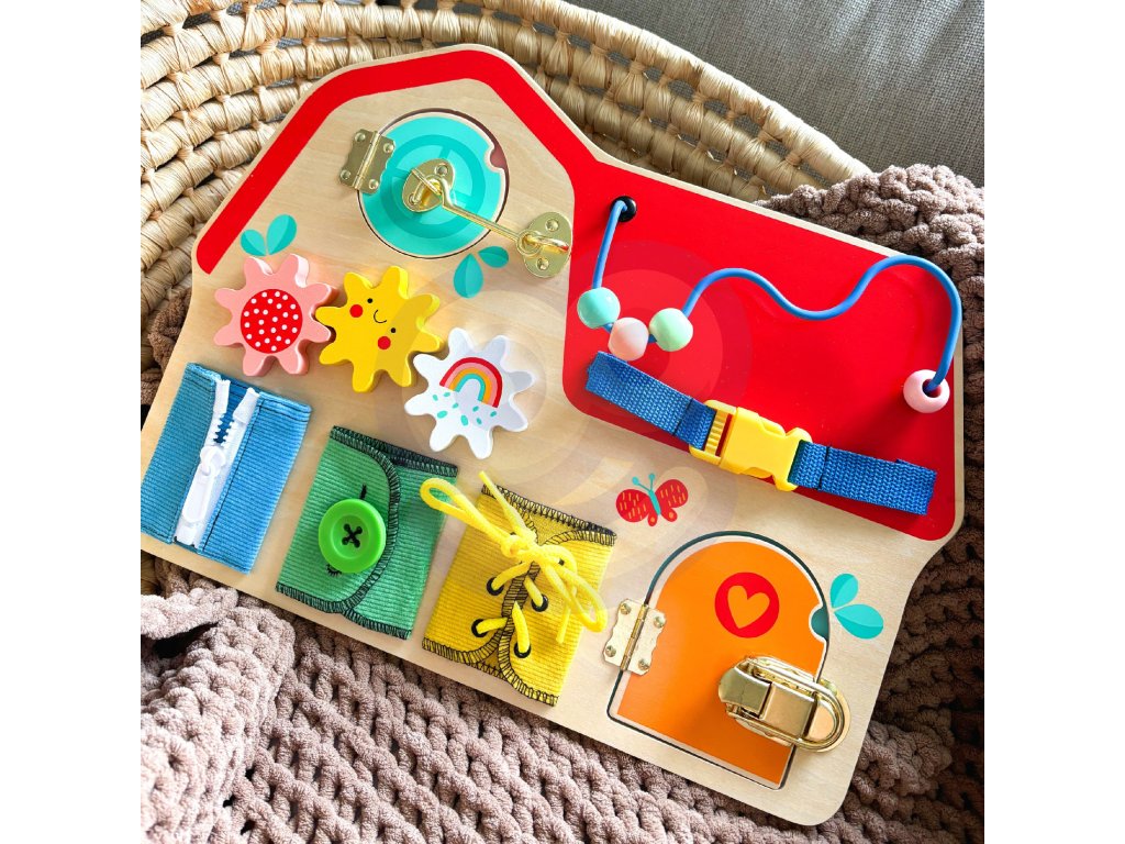 Otváranie a zatváranie rôznych zámkov a spojovací materiál nie je pre vaše dieťa ľahká úloha! Preto je fantastickýtabuľky značka Tooky Toy je hotovým riešením na získanie tejto zručnosti. Tabuľaskladá sa z drevenej dosky s dvoma zámkami, sponou, zipsom, gombíkom a šnúrky. Okrem toho je doska vybavená prevodmi a motorovou slučkou. Doska tvaruje nielenzákladné zručnosti, ale aj koordináciu oko-ruka a obratnosť prstov dieťaťa.