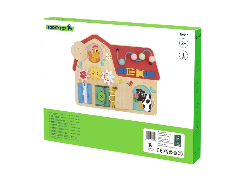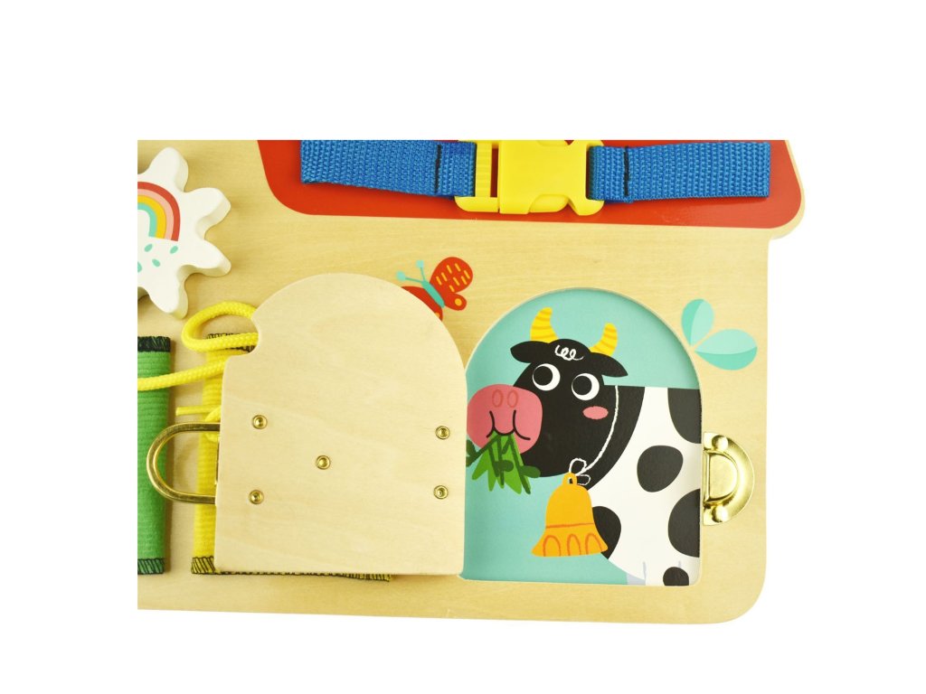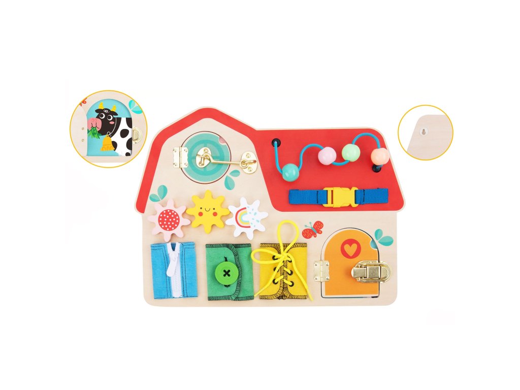 TOOKY TOY Drevená Montessori manipulačná doska Hrady Zámky slučky