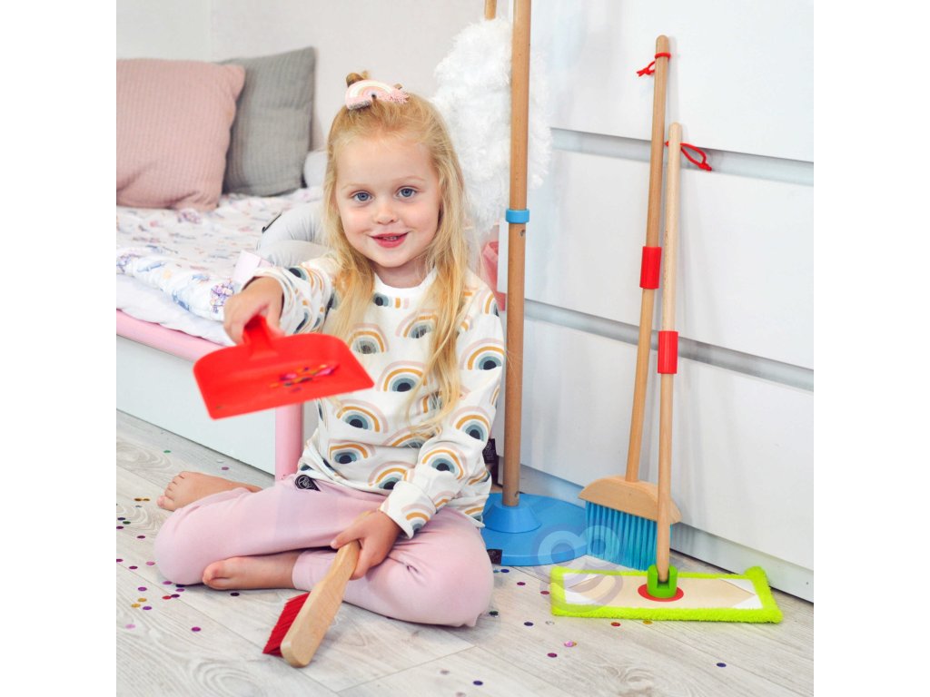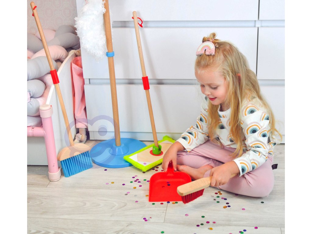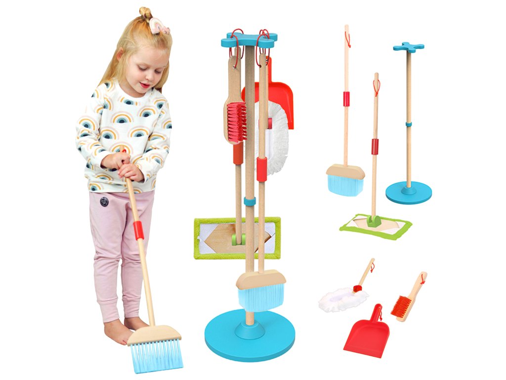 Čistiaca súpravaod značky Tooky Toy je ideálnou voľbou pre deti, ktoré chcú aktívne pomáhať pri domácich prácach a zároveň sa učiť hrou. Farebná drevená súprava ponúka doplnky dokonale prispôsobené detským rúčkam - vďaka nim sa batoľatá s chuťou zahrajú na malých pomocníkov a objavia radosť zo starostlivosti o poriadok v domácnosti. Táto hračka poskytuje nielen veľa inšpiratívnej zábavy, ale podporuje aj rozvoj detí a buduje správne návyky.