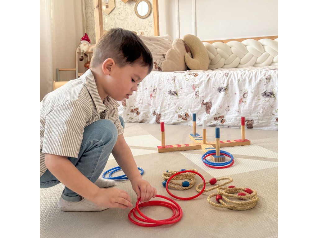 Drevená hra Serso Ring Tossz adresy značka Tooky Toyje to hraarkáda pre celýrodina a priatelia, čo umožňujeaktívne minúť čas na adresevonkua dokonca aj vdomov! Vaše dieťa si vďaka nemu osvojímanuálne a mentálne zručnosti t. j.reflexia, presnosť ikoncentrácia. Hra ľahkoinštalácia idemontáž.