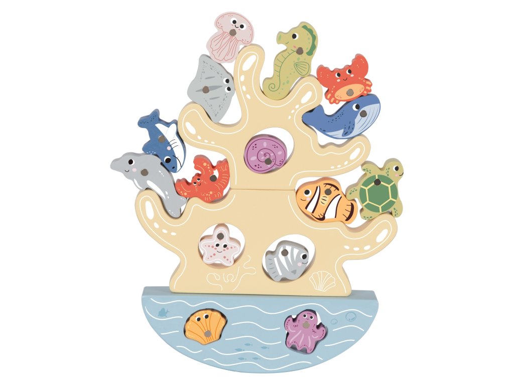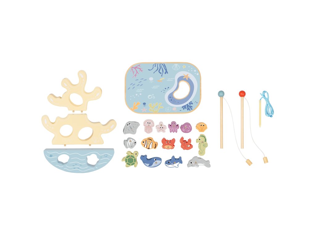 TOOKY TOY Drevené morské hračky Balancujúca veža Figúrky chytajúce ryby 23 kusov