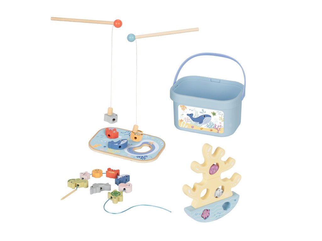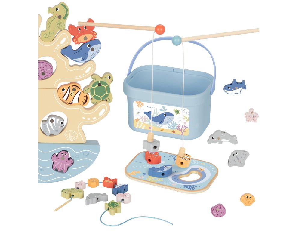 Ponorte sa do sveta podmorských dobrodružstiev s touto jedinečnou sadou drevených zvieratiek od značkyTooky Toy! Nie sú to len obyčajné figúrky - je to celý oceán možností, ktoré potešia každé dieťa. Vo vnútri sa nachádza magnetický rybársky prút na chytanie farebných tvorov, priestorové balančné puzzle s koralovým útesom a vzdelávací navliekač s pôvabnými obyvateľmi hlbín. Žiarivé farby, priateľské tvary a prírodné drevo robia hru nielen fascinujúcou, ale aj úplne bezpečnou. Každý dielik bol navrhnutý s ohľadom na malé rúčky, ktoré spoznávajú tajomstvá morského sveta.