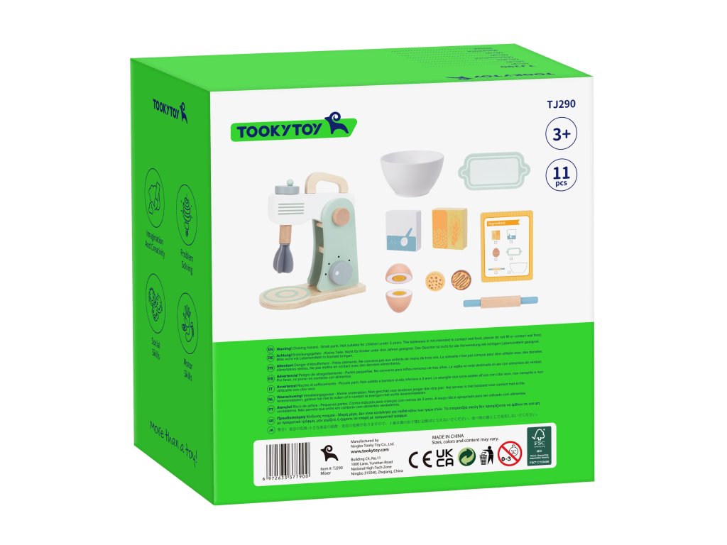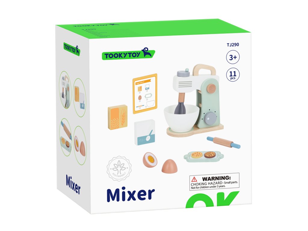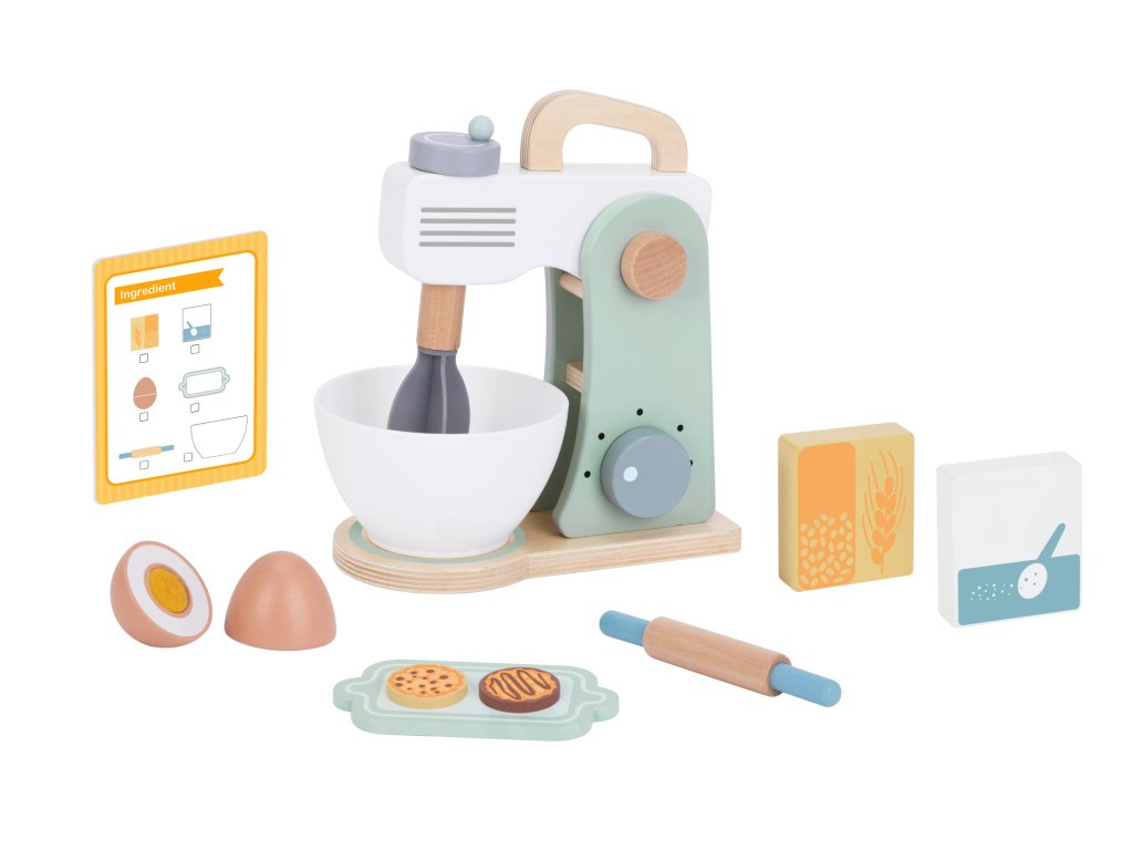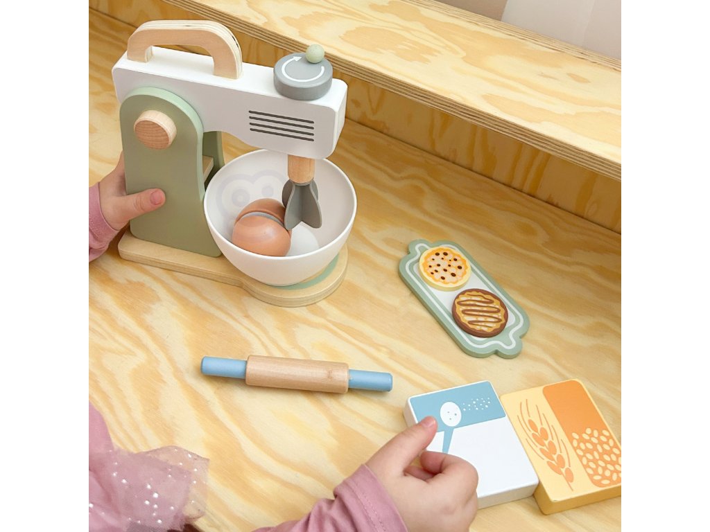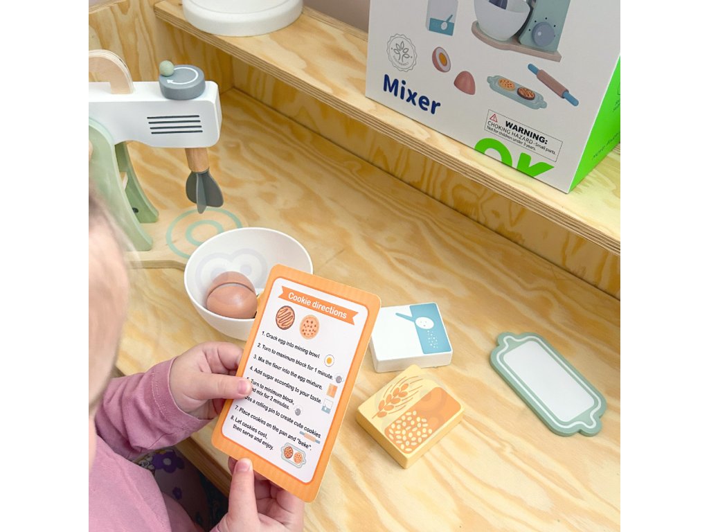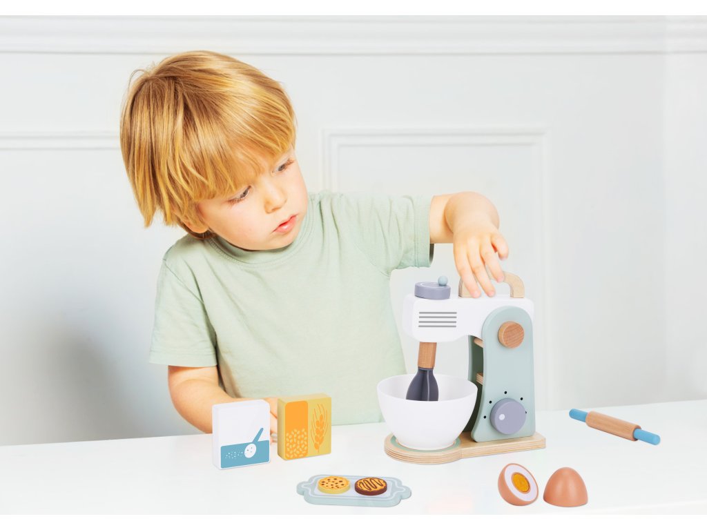 Drevený mixér pre detské značkyTooky Toy v pastelových farbách je užitočným a štýlovým doplnkom detskej kuchyne. Všetky deti milujú chutné sušienky. Prečo ich nepripraviť zábavným spôsobom? Do misky dajte vajíčko a múku, nezabudnite na cukor a začnite miesiť. Získate tak chutné sušienky, akoby boli skutočné. Malý kuchár bude môcť svojich blízkych pohostiť chutným pečivom. Hry zahŕňajúcehranie rolí sú dôležitou súčasťou vzdelávania a rozvoja detí. Umožňujú dieťaťurozvíjať predstavivosť a praktizovať rôznesociálne a komunikačné zručnosti simulovaním každodenných situácií dospelých.