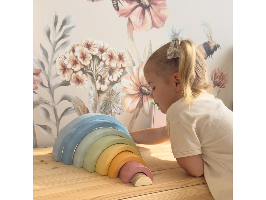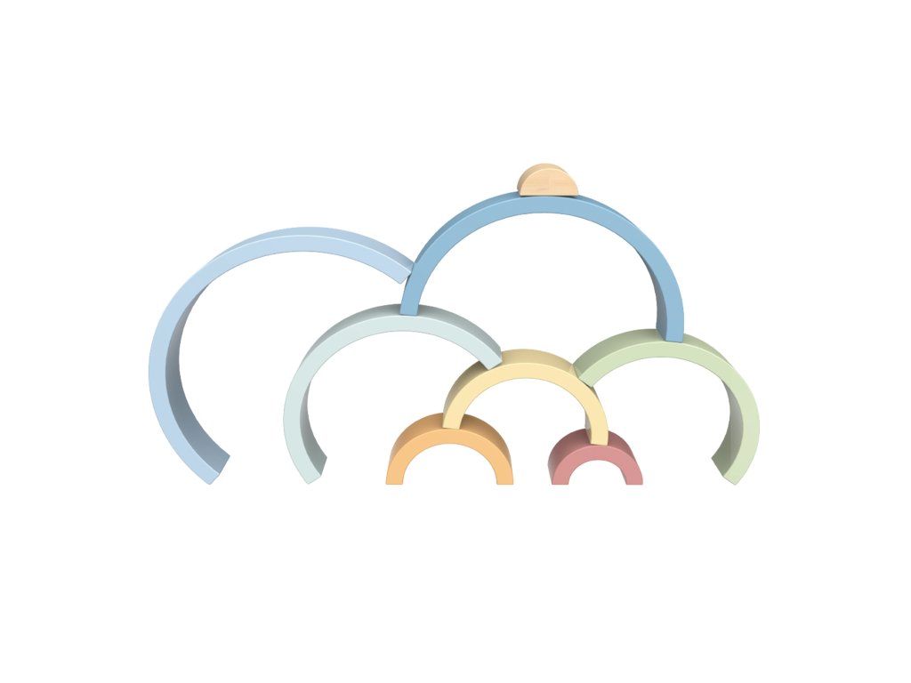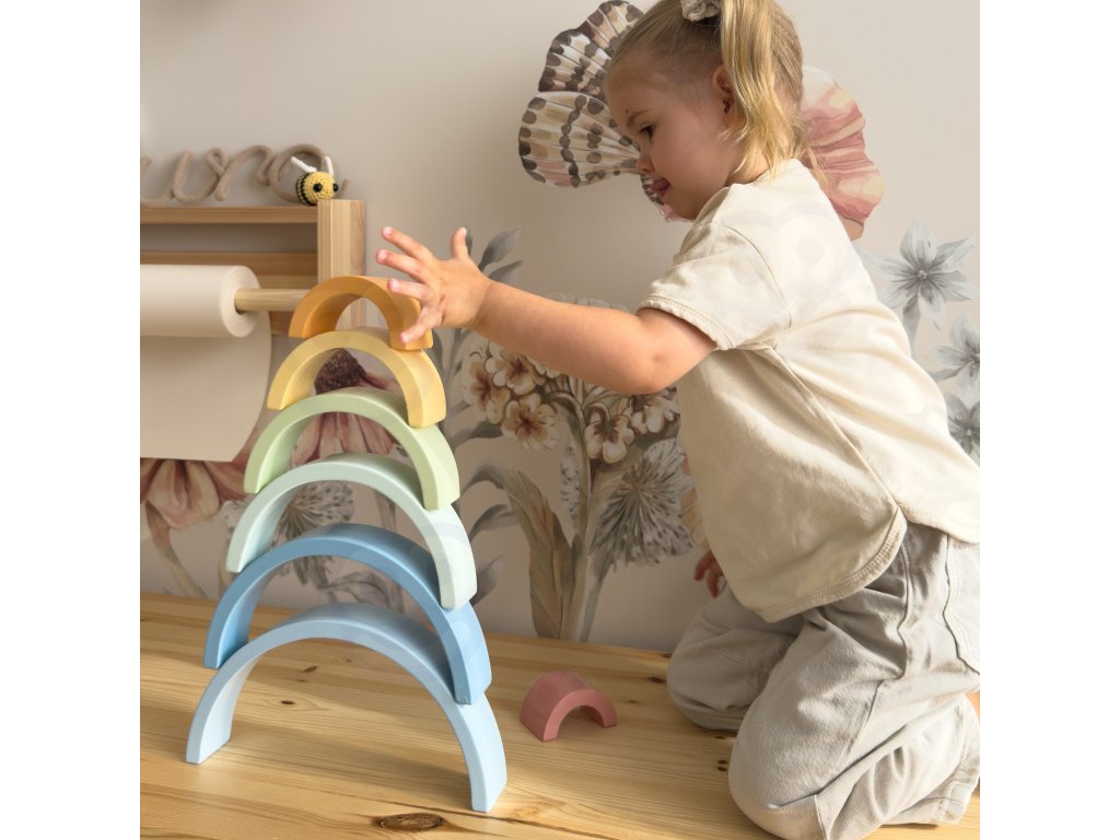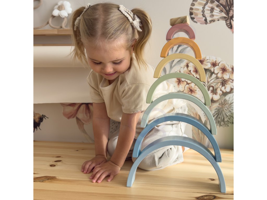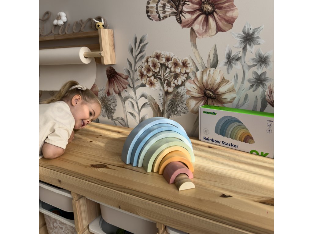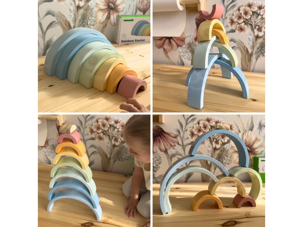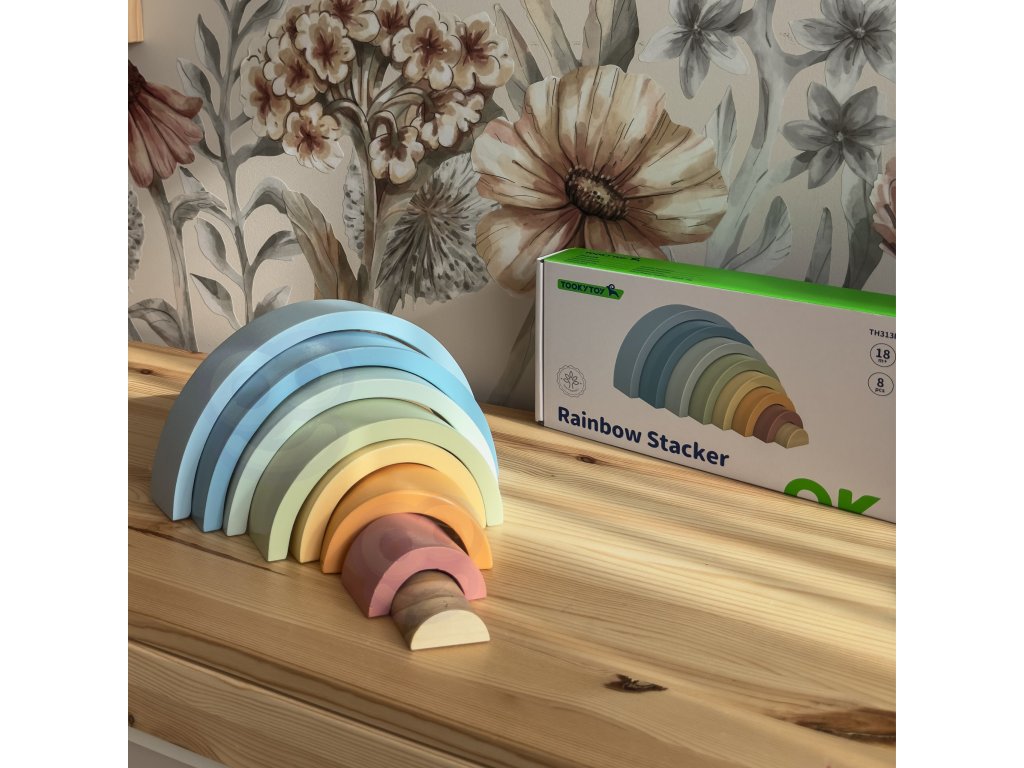 Drevená dúha zHRAČKA TOOKY TOY je hračka, ktorá poteší vaše dieťa svojimi farbami a budepodporte jeho rozvoj! Skladá sa z 12 polkruhových farebných dielov, ktoré možno rozmiestniťdesiatkami spôsobov - Od klasickej dúhy až po fantastické budovy a tunely. Ideálne na hranie od18 mesiacov!Dieťa bude nadšene experimentovať s farbami a tvarmi a zároveň sa naučí logickému mysleniu, porovnávaniu veľkostí arozvoj ich manuálnych zručností