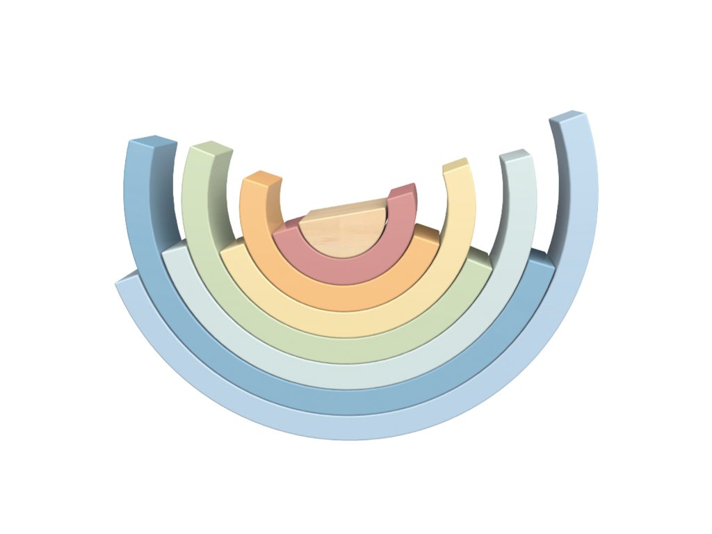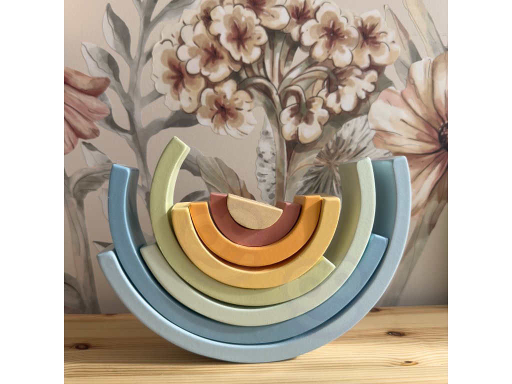 - - 12 pastelových polkruhových drevených prvkov