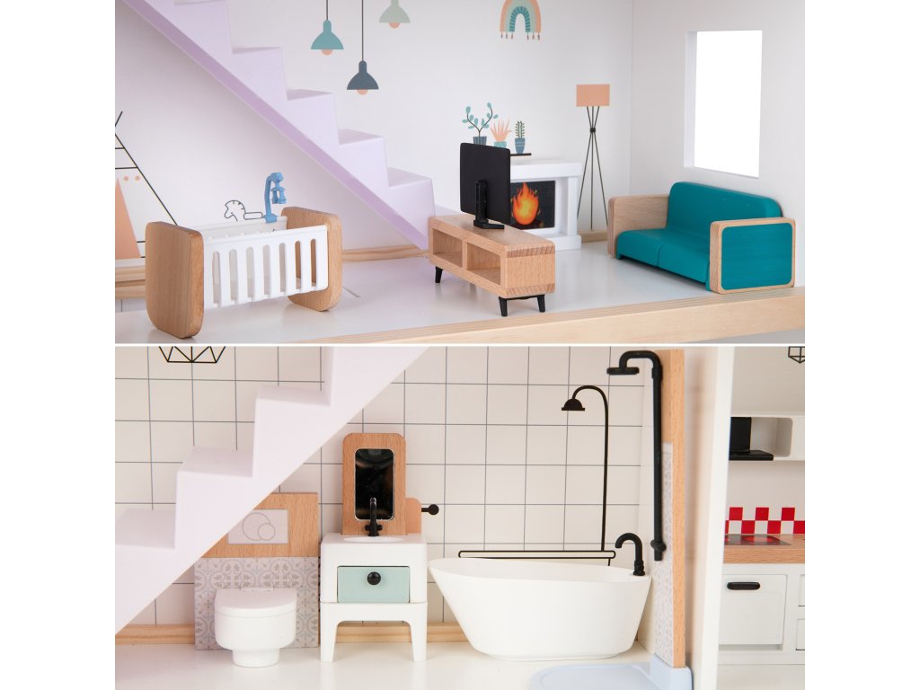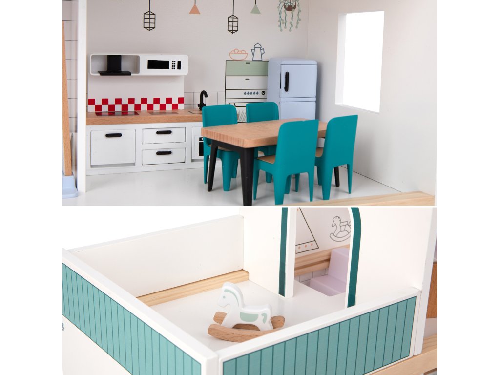 Domček pre bábiky Tooky Toy inšpiruje deti k tvorivej hre, rozvíjať ich predstavivosť a sociálne zručnosti a zároveň ich učiť o rodinnom živote. Je to ideálna voľba pre každé dieťa, ktoré miluje moderný dizajn a kreatívnu hru.
