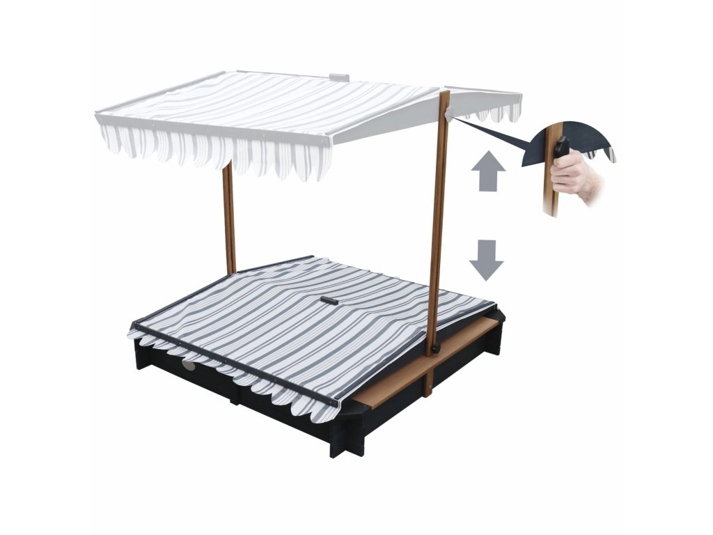- Nastaviteľný baldachýn 2v1 - z nepremokavého polyesteru (280 g/m²) s ochranouUV50ktorá chráni deti pred slnkom a dažďom.Dá sa ľahko nastaviťnastavením uhla a po skončení hry ho spustite, čím sa zmení na ochranný kryt pieskoviska.