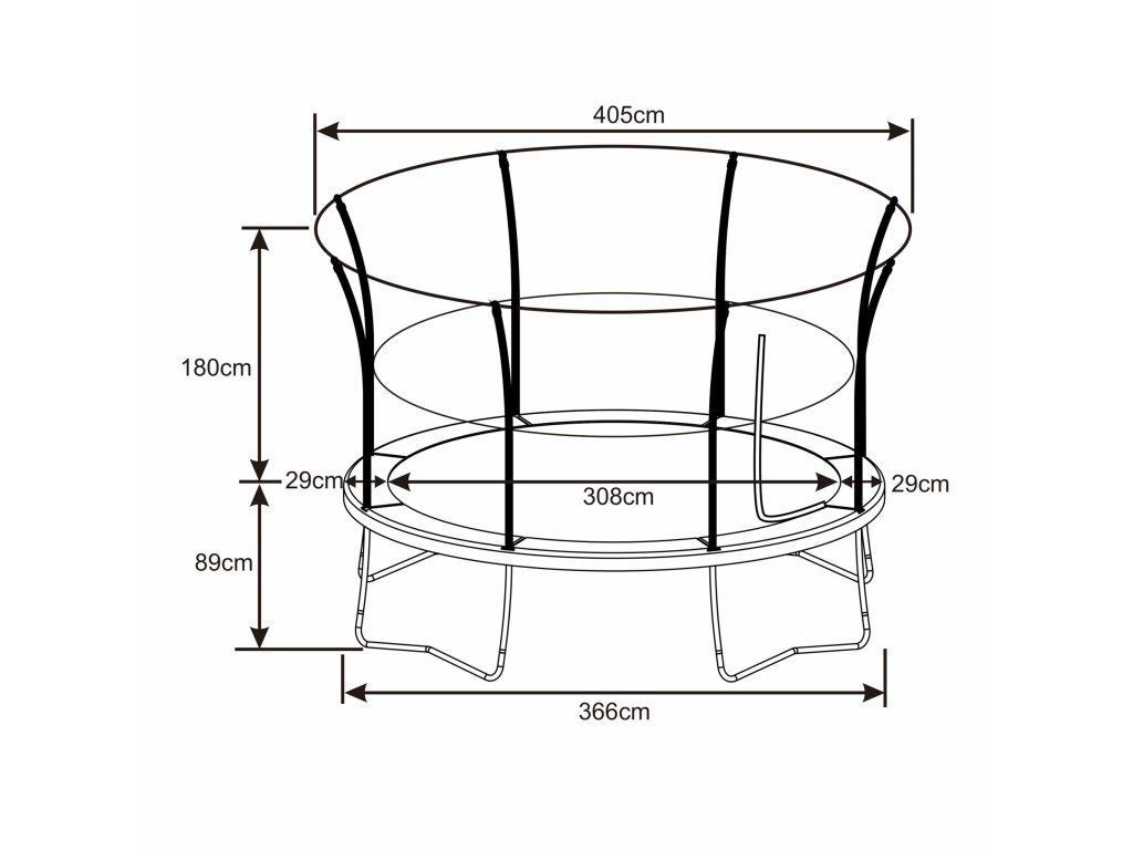- Trampolína má priemer 366 cm a je vybavená pevnou bezpečnostnou sieťou, ktorá zaručuje maximálnu zábavu a bezpečnosť pri hre vonku