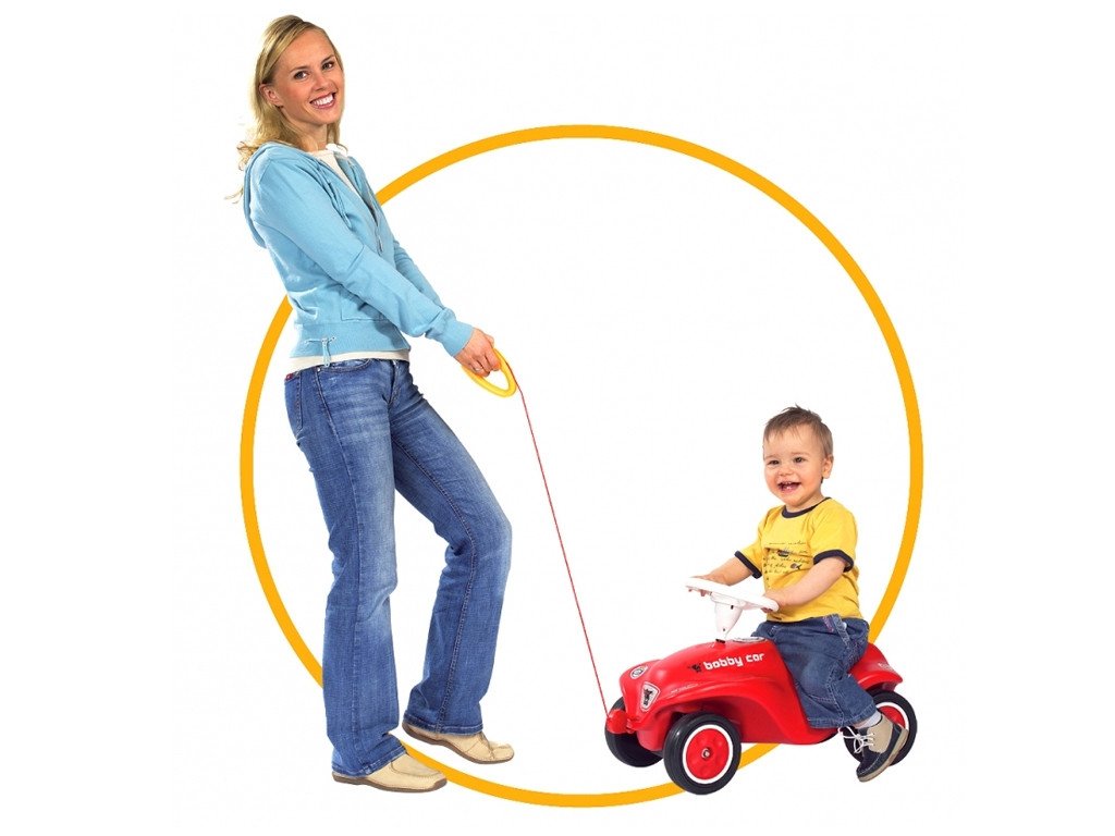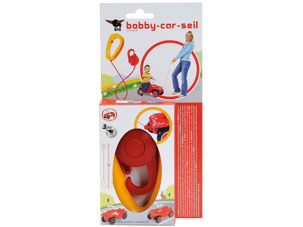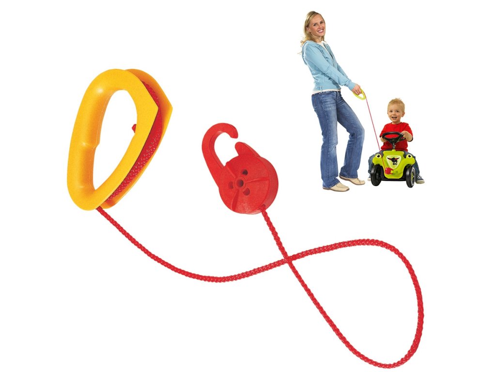 Veľké červené ťažné lano so žltou rukoväťou je vhodné pre všetky vozidlá BIG Bobby Car vybavené ťažnou rukoväťou. Keď sa nepoužíva, ľahko sa zmestí do vrecka.