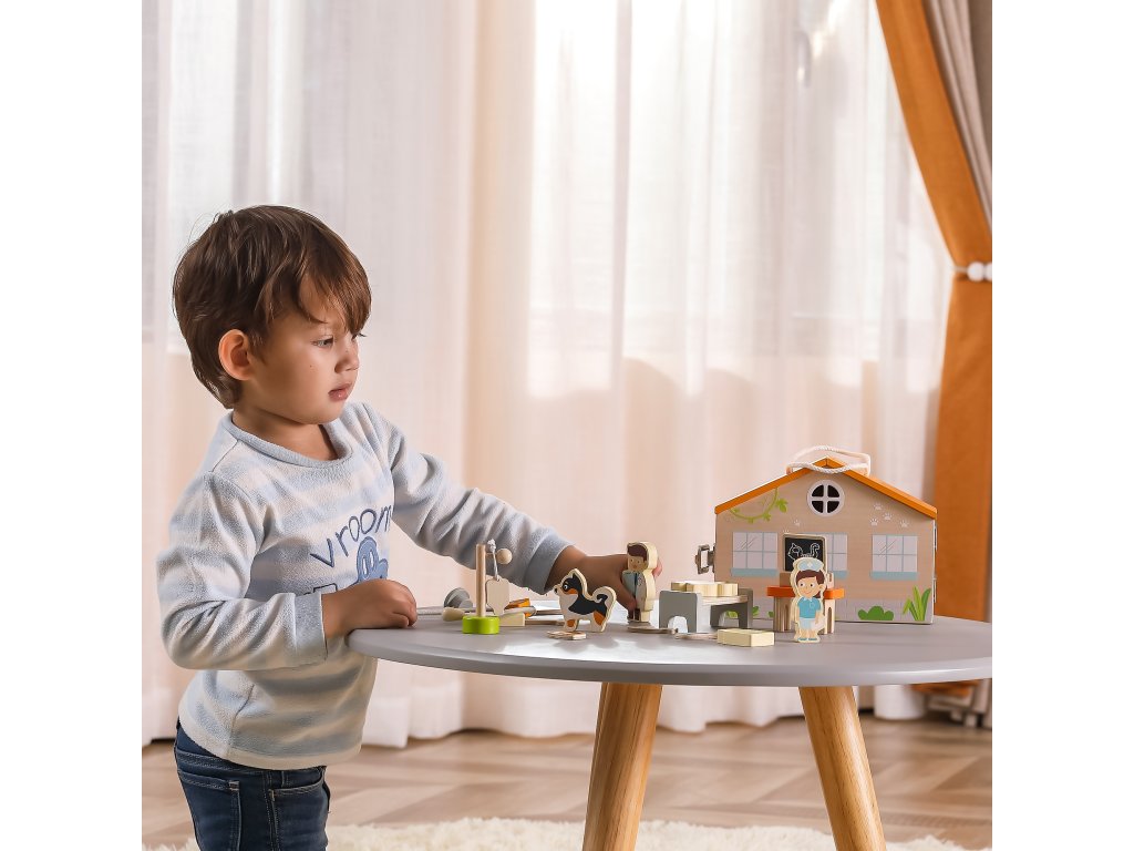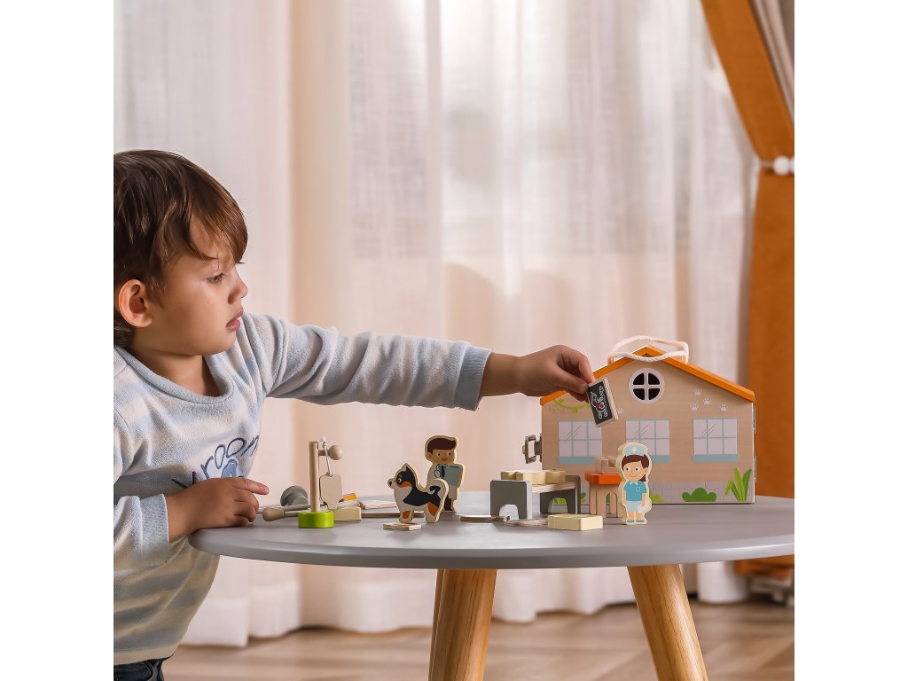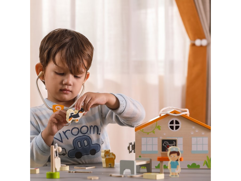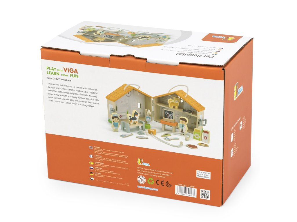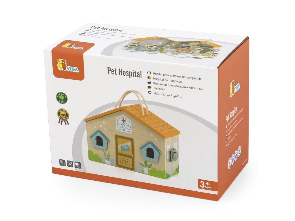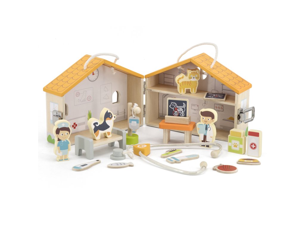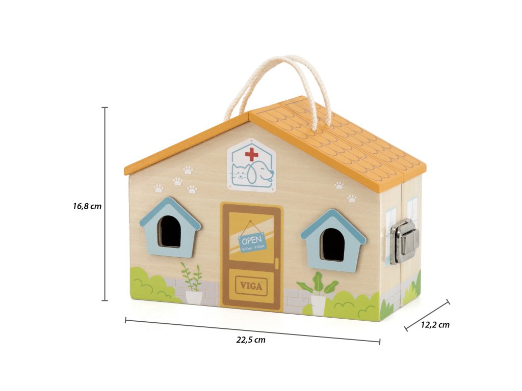Drevená farebná Klinika zvieratiek v kufríku od spoločnosti Viga je jednou z popredných hračiek, ktorá umožní vášmu dieťaťu vstúpiť do sveta zaujímavej a kreatívnej hry. Táto úžasná súprava bude stimulovať predstavivosť vášho dieťaťa. Vďaka nej sa batoľa zahrá na rolu veterinára