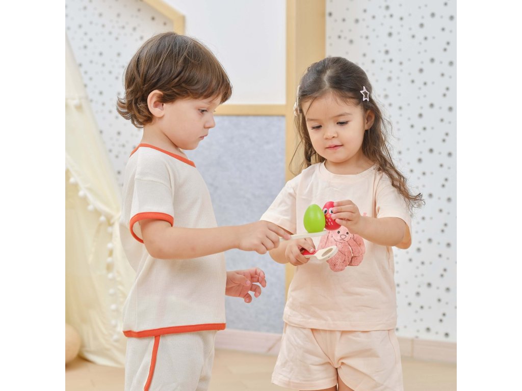 VIGA Beh s vajíčkami na lyžičke pre deti Tímová hra zručnosti