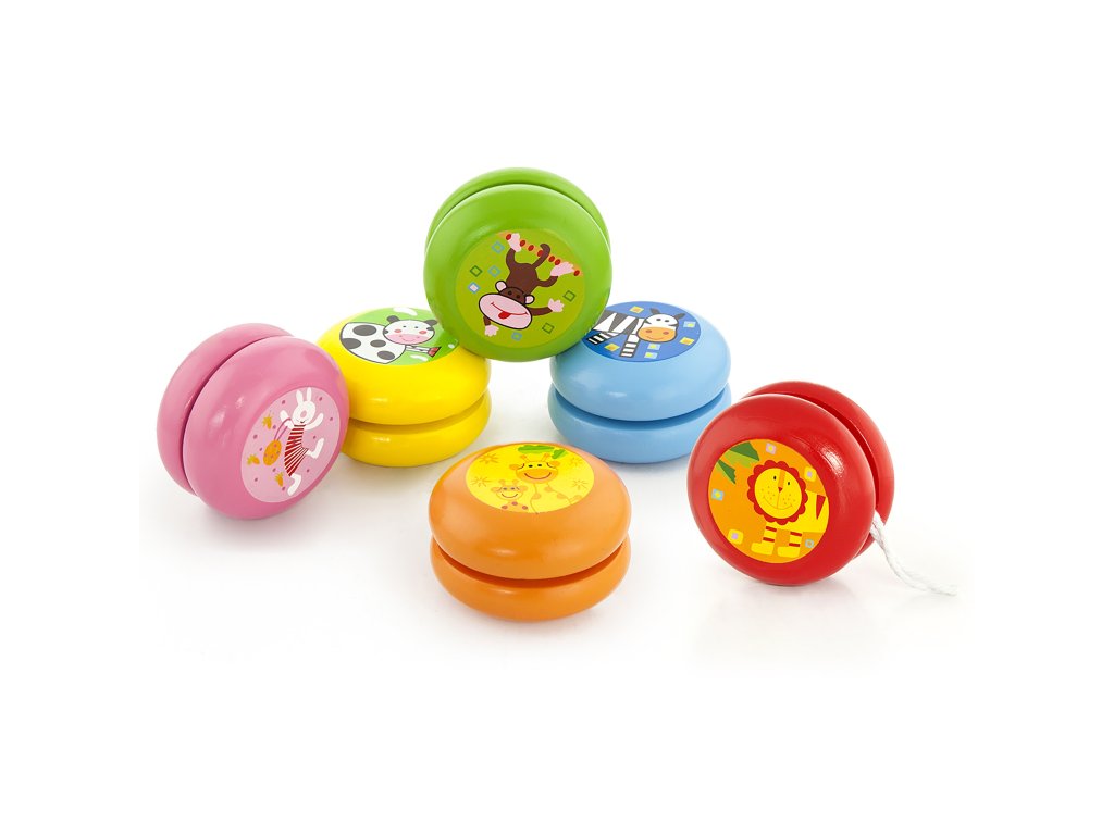 Farebné drevené yoyo Viga zaručí vášmu dieťaťu pútavú hru a umožní mu precvičovať koordinácia oko-ruka.