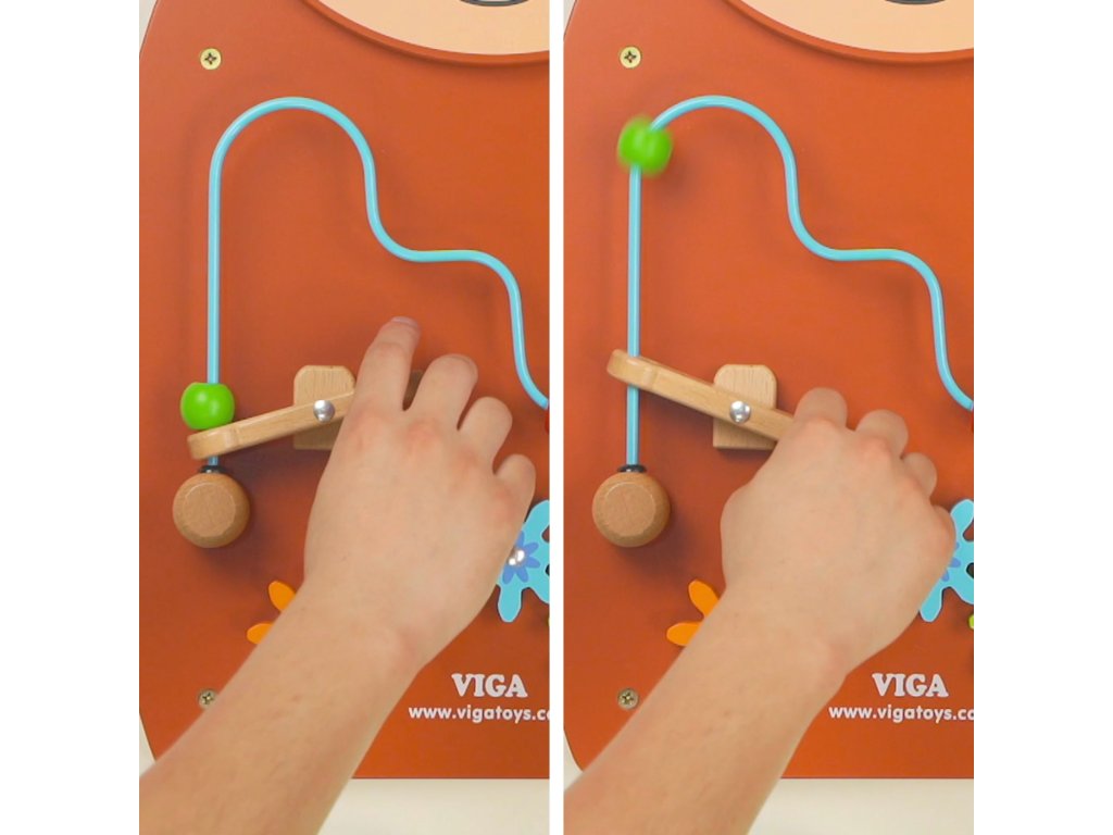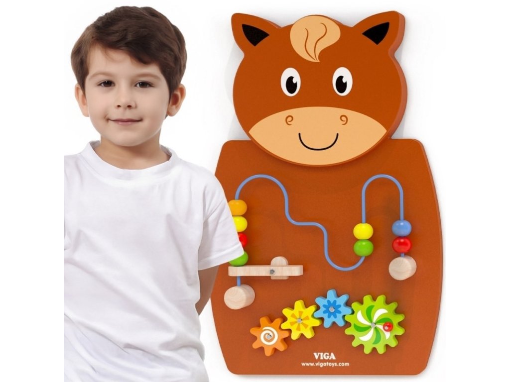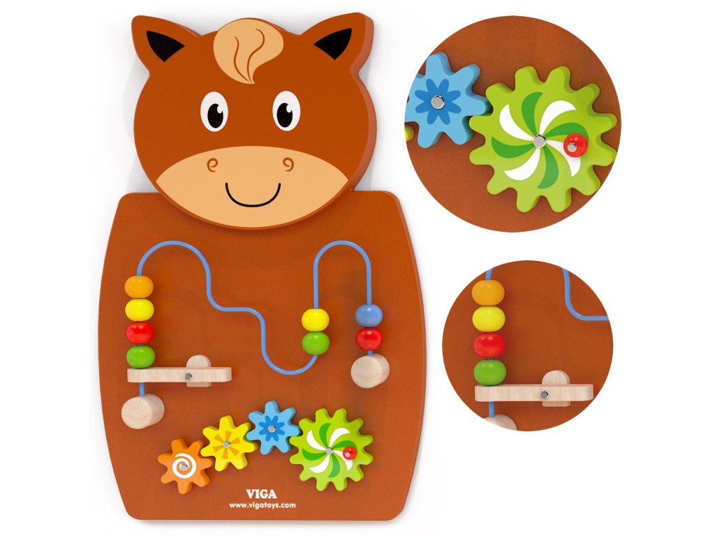 Drevená senzorická manipulačná tabuľa Koník od spoločnosti Viga Toys je farebná manipulačná tabuľa, ktorá mení hru na fascinujúce učenie prostredníctvom hmatu a pohybu! Batoľatá milujú posúvanie korálikov po slučke a sledovanie otáčania ozubených koliesok, čo upúta ich pozornosť a zapojí ich do hry. Interaktívne prvky podnecujú deti k skúmaniu, precvičovaniu zručnosti prstov a spoznávaniu farieb a tvarov. Je to dokonalá Montessori hračka na podporu rozvoja manuálnych zručností a logického myslenia. Je vyrobená z odolného lakovaného dreva s bezpečnými farbami a poskytuje deťom hodiny tvorivej hry a rodičom pokoj.