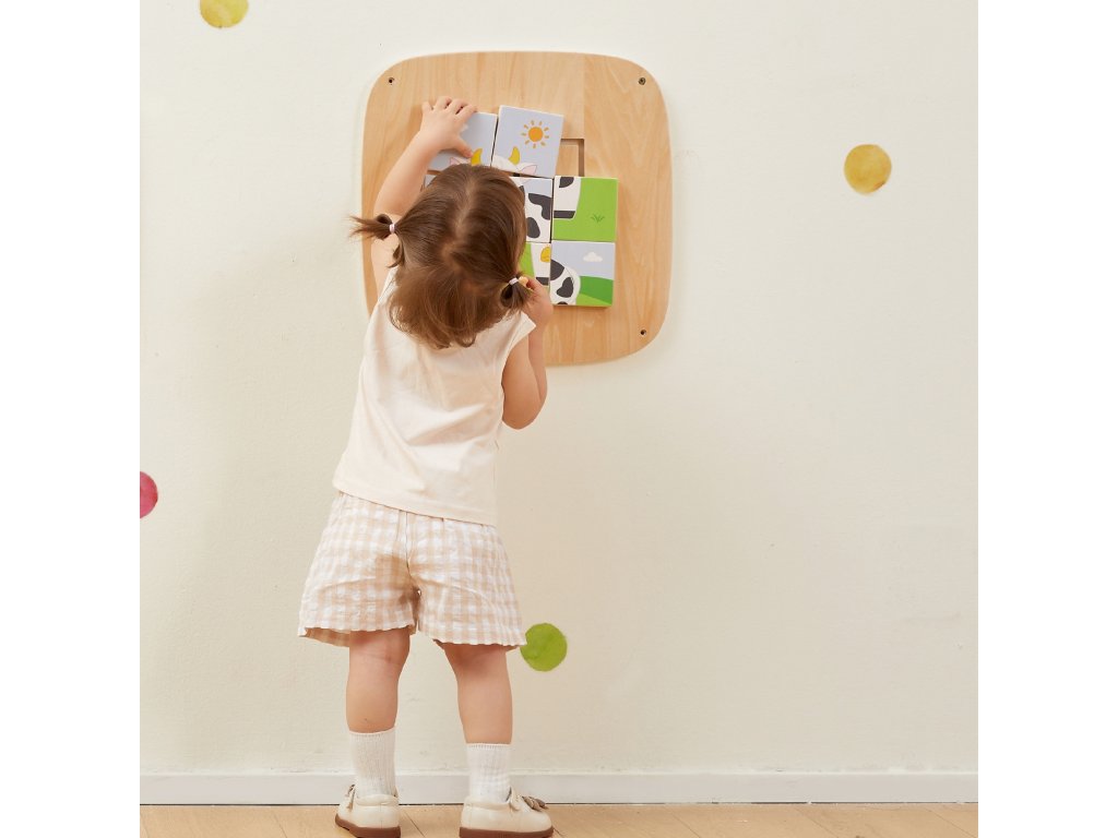 VIGA Drevená manipulačná doska Senzorické obrázkové puzzle