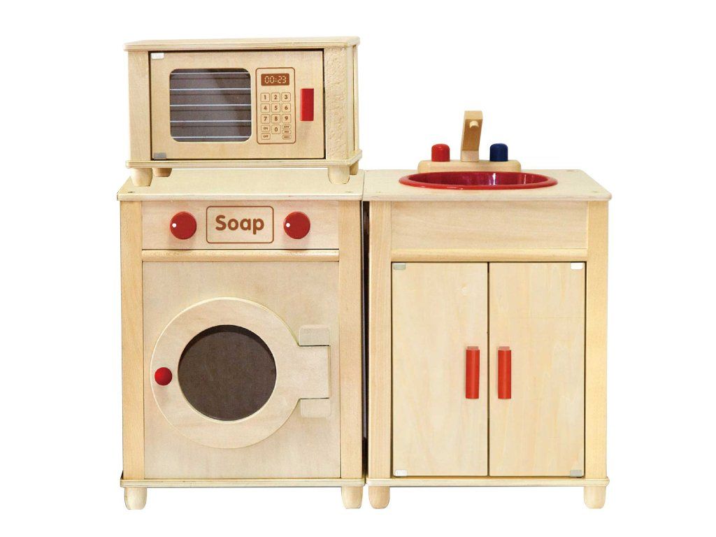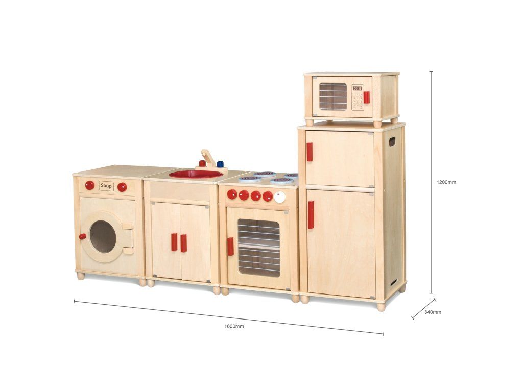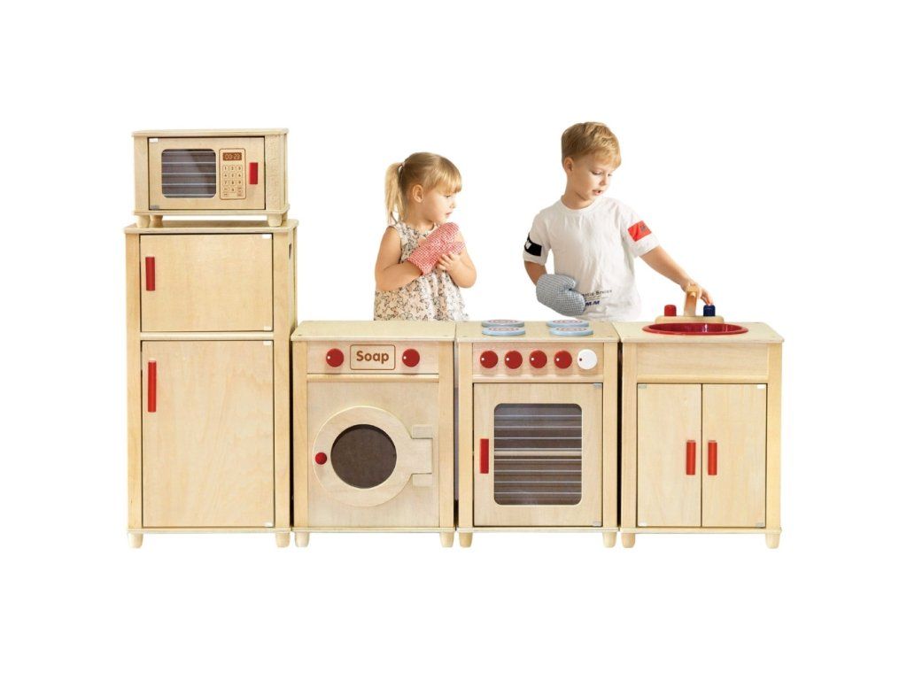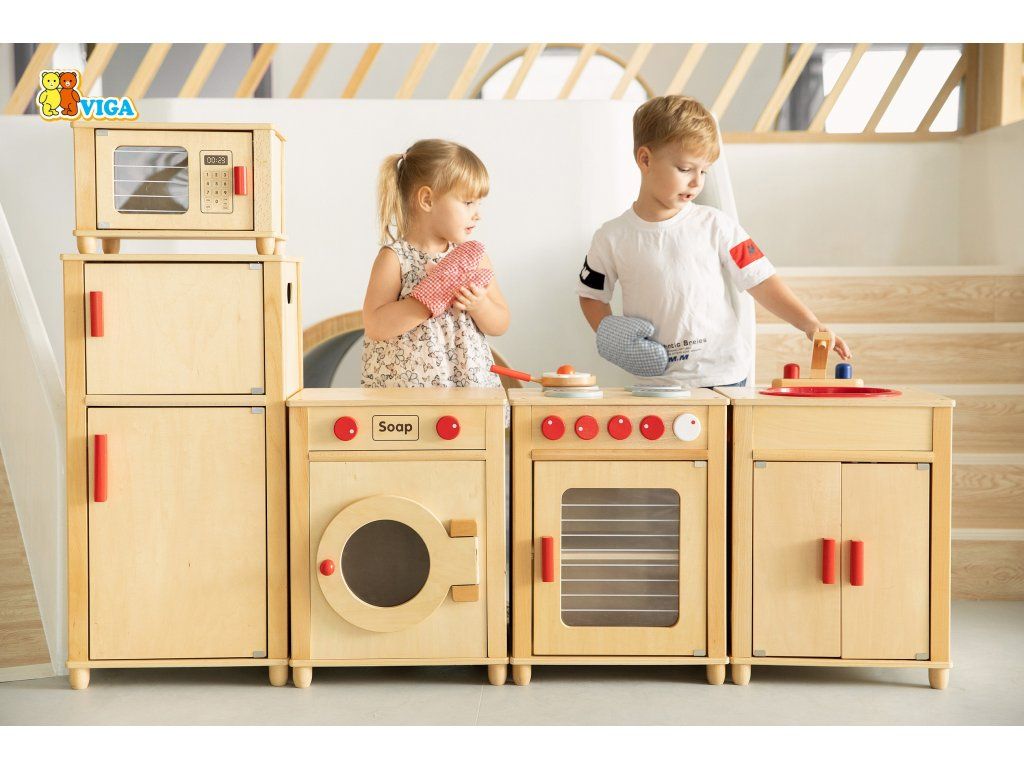 Drevená obrovská prírodná kuchynská súprava pre deti od značkyViga umožňuje hru viacerých detí súčasne. Súprava je ideálnavhodné na použitie ako hracia plocha pre deti od 3 rokov. Kuchyňa pozostáva zo sporáka s rúrou, skrine s drezom, chladničky, mikrovlnnej rúry a práčky. Vyrobenéz bukového dreva a brezová preglejka nábytokmožno nastaviť v ľubovoľnom poradí. Šírka každého segmentu je 40 cm a ich hĺbka je 34 cm. Celková šírka súpravy je 160 cm, výška od zeme po vrchol je 53 cm a celková výška je 120 cm. Súprava na samoobslužnú montáž podľa priložených pokynov krok za krokom.