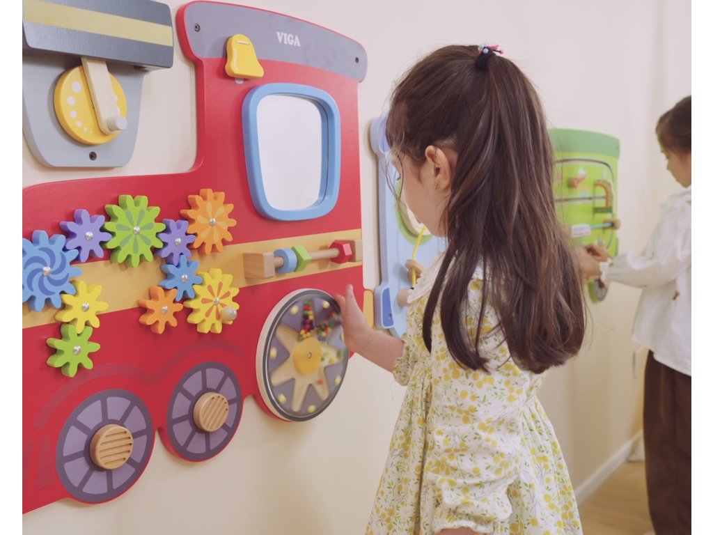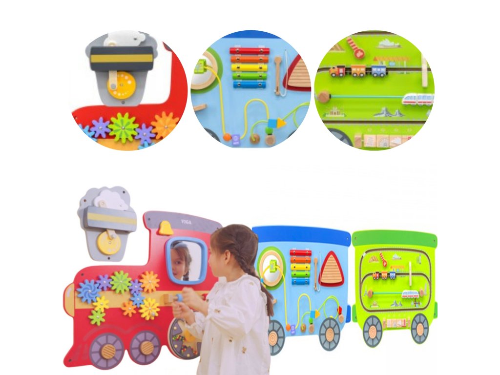 Táto jedinečná senzorická tabuľa v tvarefarebný vlak z adresyHračky Viga premení stenu na centrum vzdelávacej zábavy a objavovania! Každá z troch častí -lokomotíva a dva vozne - ponúka rôzne prvky, ktorými možno hýbať, otáčať a stláčať, aby sa deti zapojili do zmyslových experimentov. Pri hre s kolieskami, činelmi, slučkami a interaktívnou dráhou si batoľatá rozvíjajú zručnosť, koncentráciu a koordináciu. Je to ideálna pomôckaMontessori pre domácnosť, škôlku alebo herňu - podporuje učenie prostredníctvom praktických činností! Je vyrobená z odolného lakovaného dreva v žiarivých a bezpečných farbách a poskytuje hodiny radostnej a hodnotnej zábavy.