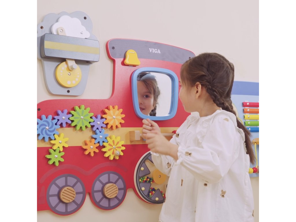 VIGA Drevená senzoricko-manipulačná tabuľa EDU Train