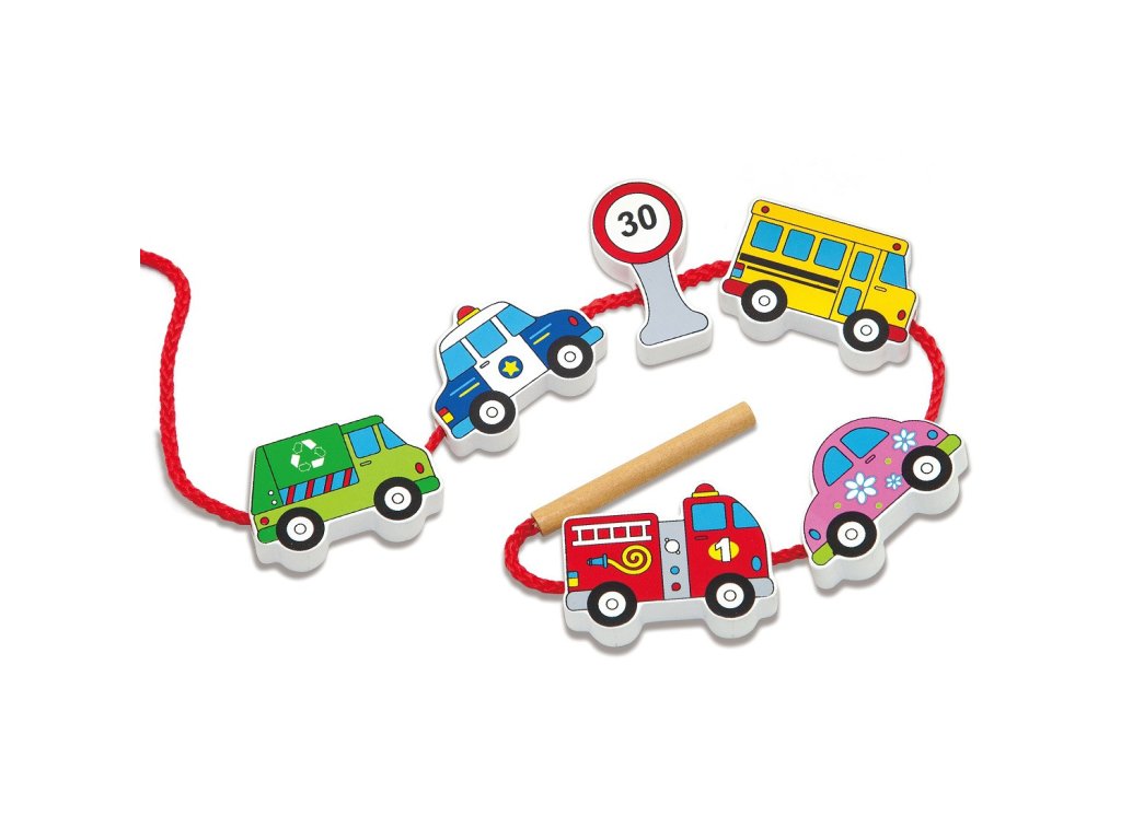 VIGA Drevené prepojovacie špagátové puzzle Autá