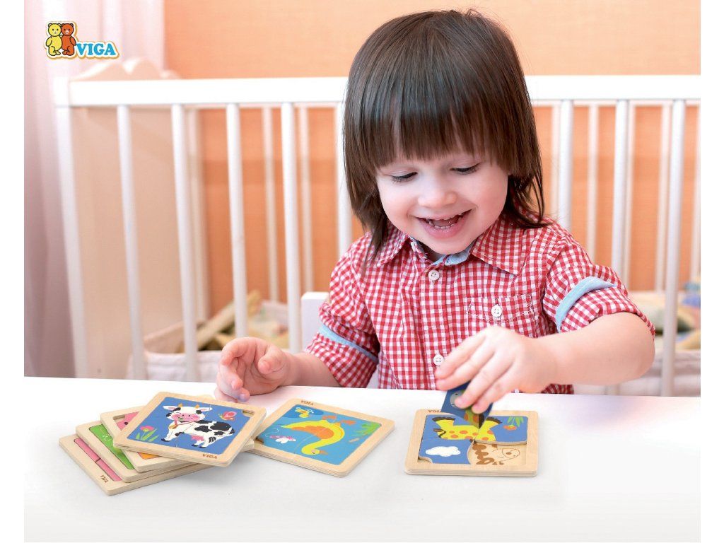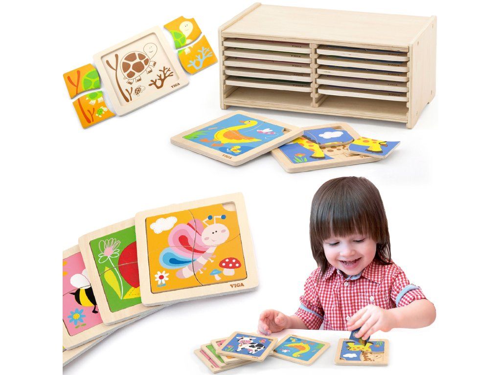 VIGA Drevené puzzle 12 dosiek po 4 puzzle v stojane