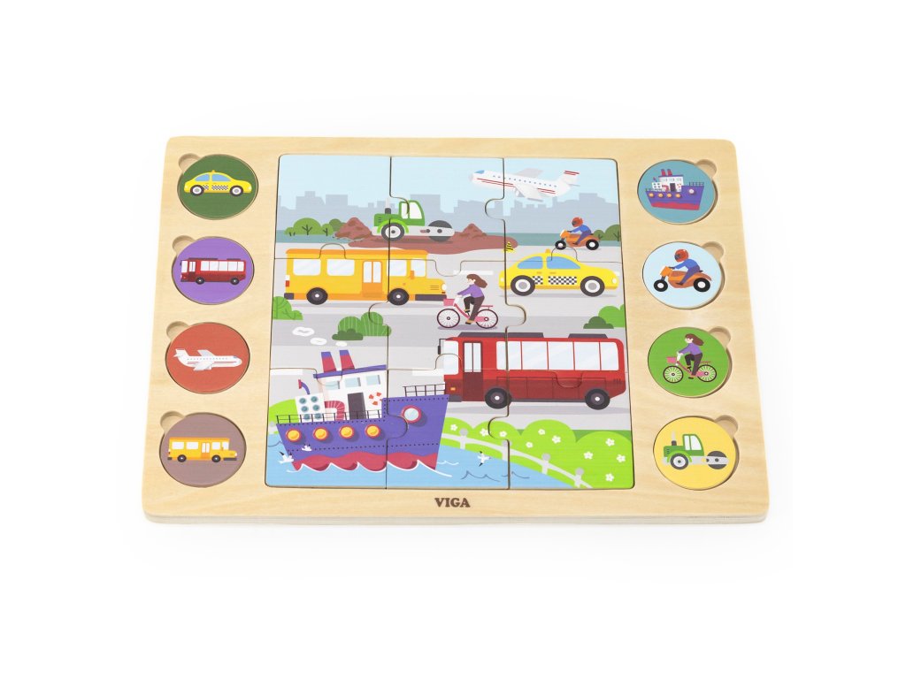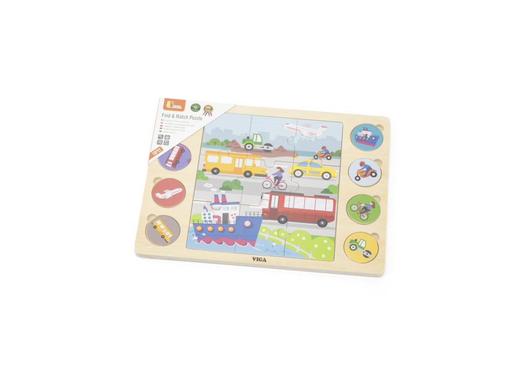Hru začnite poskladaním 9-dielnej skladačky v strede. Vaše dieťa potom môže priradiť 8 okrúhlych puzzle k zodpovedajúcim tieňom na hracej ploche. Táto úloha rozvíja nielen manuálne zručnosti a koordináciu, ale aj logické myslenie. Nakoniec, po priradení všetkých dielikov, môže vaše dieťa pomenovať rôzne dopravné prostriedky a nájsť ich na veľkom poskladanom obrázku. Je to vynikajúci spôsob, ako rozvíjať slovnú zásobu a budovať zručnosti logického myslenia.