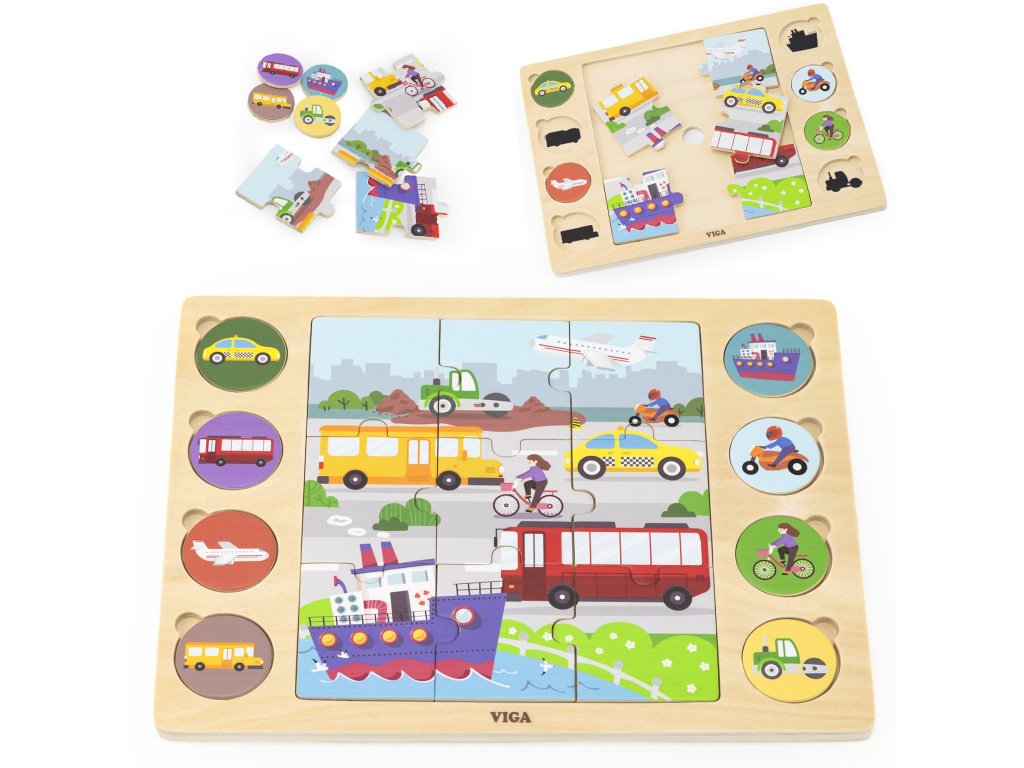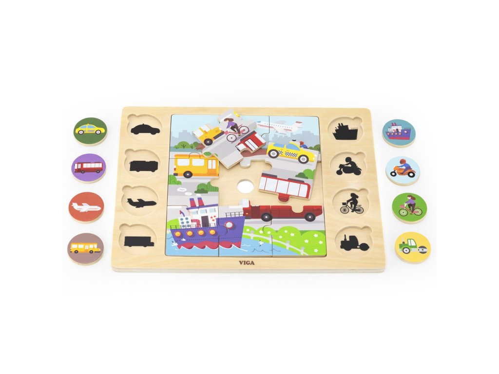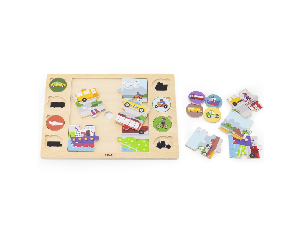 VIGA Drevené puzzle Guess by Shadow - Dopravné prostriedky Puzzle 17 ks