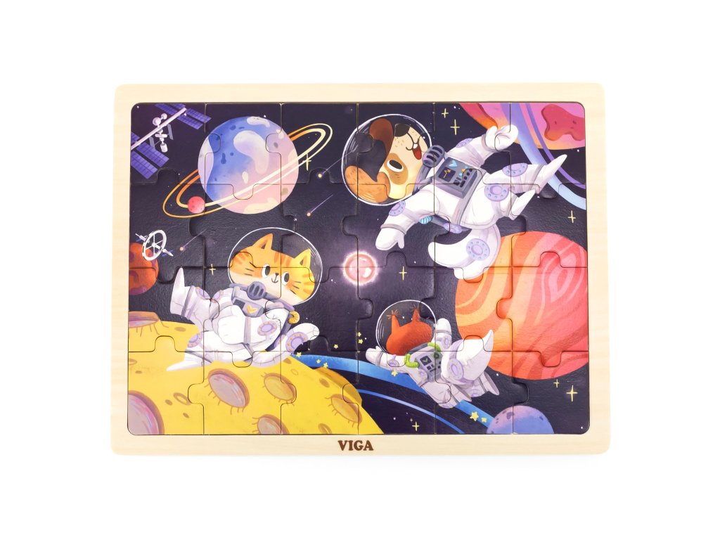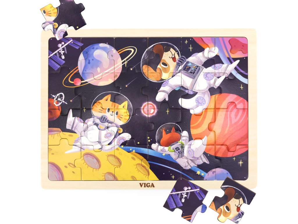 VIGA Drevené puzzle Puzzle 24 ks Vesmírne dobrodružstvo